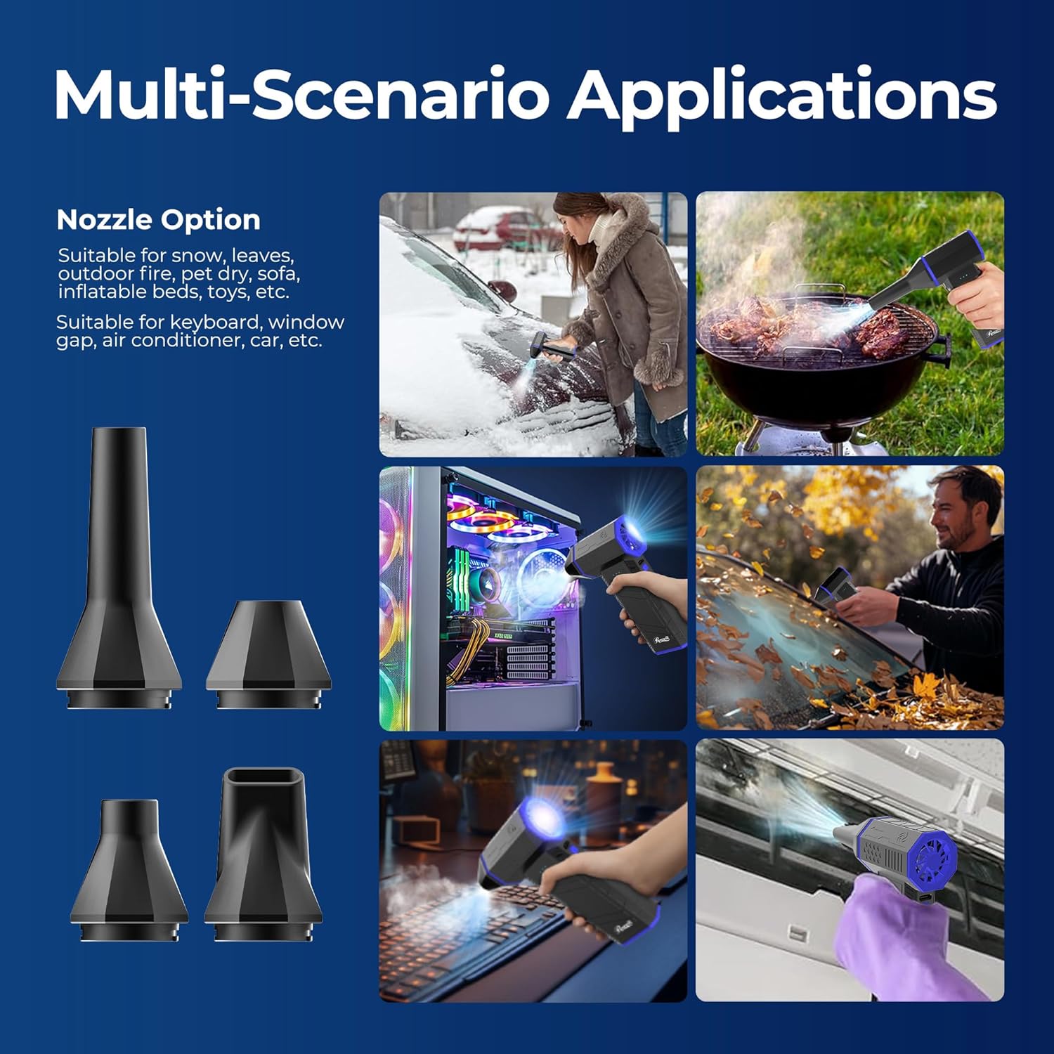 - Wide Application and Versatile Cleaning Tool : Rosewill electric air duster comes with 4 nozzles, making it suitable for a variety of scenes, such as precision electronics cleaning (computers (keyboards and chassis), cameras and laptops), home cleaning (pet hair, doorstep snow, car seats), and outdoor inflation, fire preparation, etc.. It also serves well for home clean as an air cleaning gun and car duster or car detailing air blower.