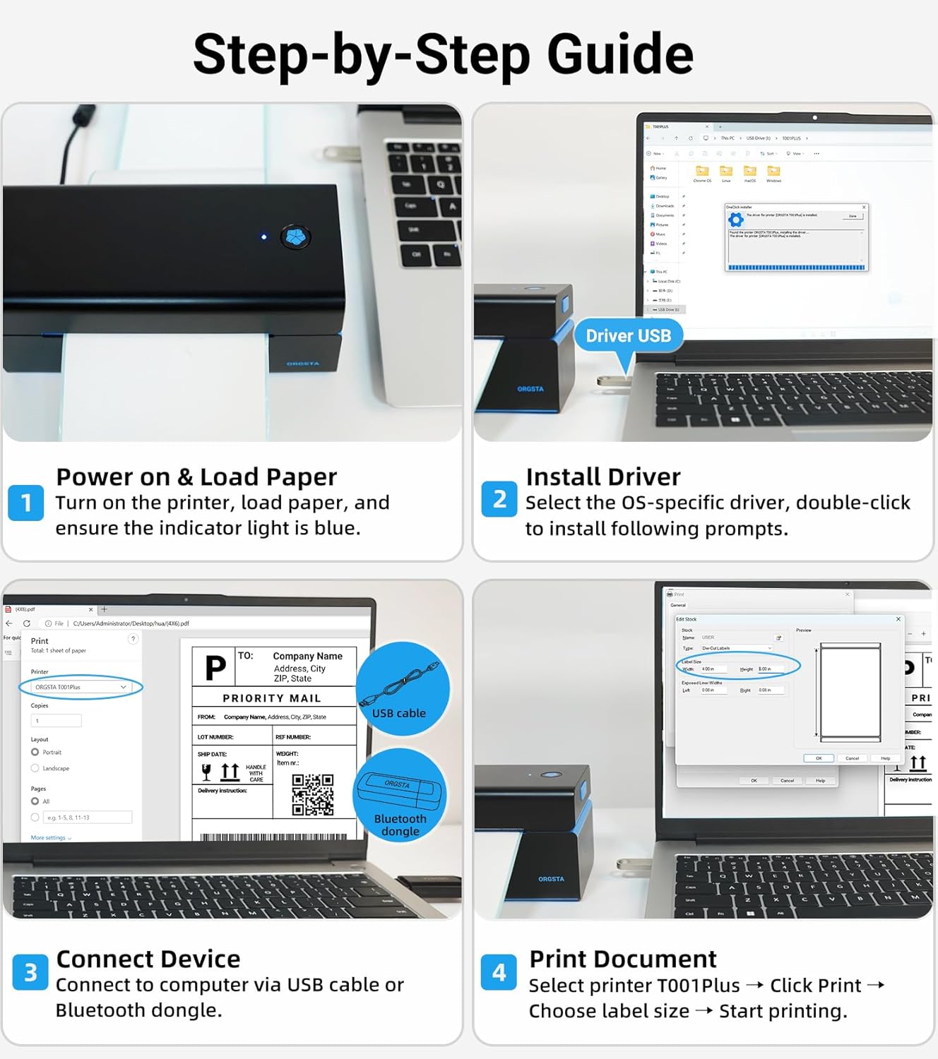 - Ready For All Platforms: Works with Amazon, Shopify, ShipStation, USPS, UPS, Endicia, Dazzle and more; The ORGSTA thermal label printer is perfect for eCommerce, warehouse, or office labeling needs, backed by reliable customer support