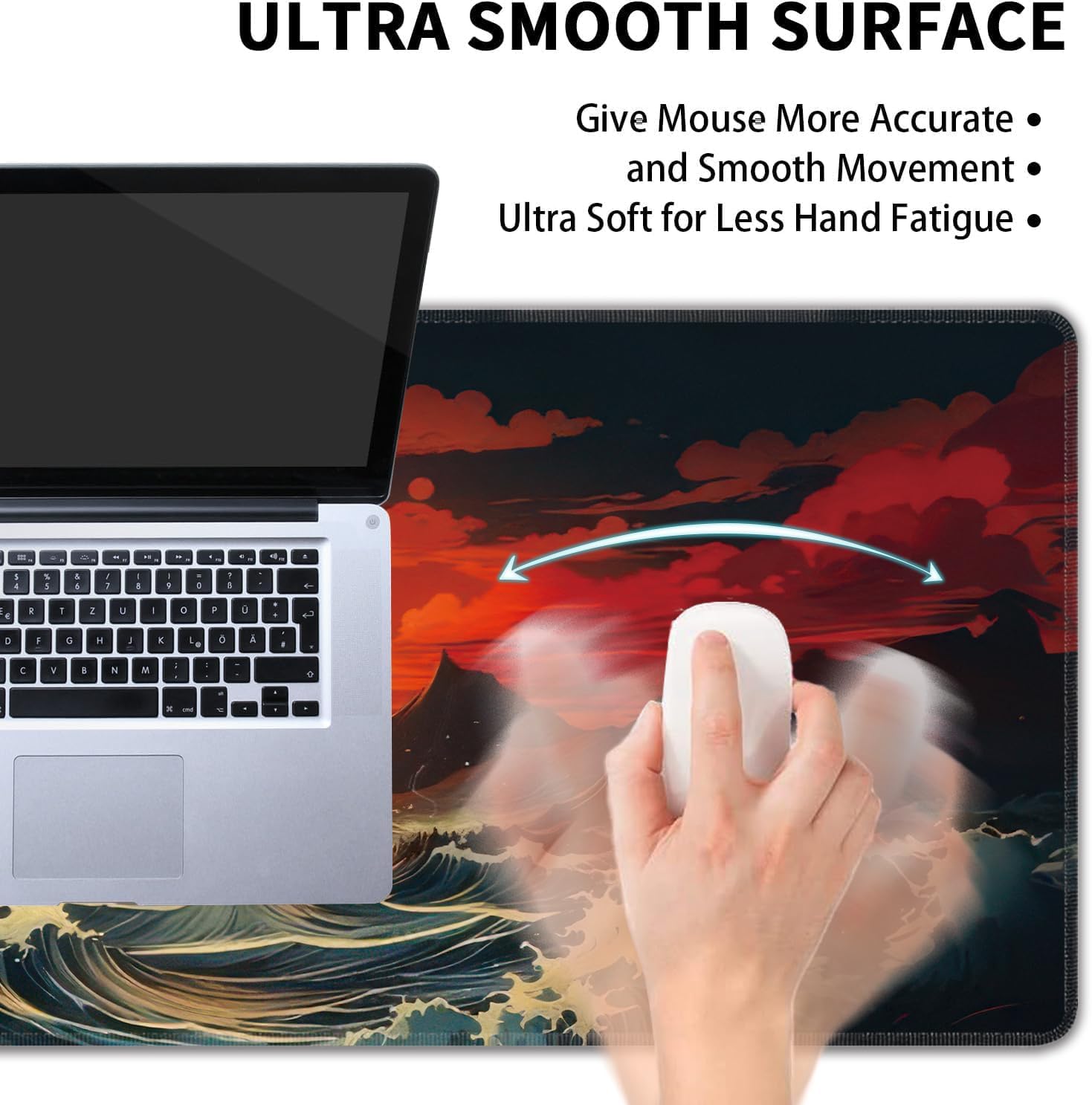- 【Cute Cool Pattern】:Japanese sea wave full moon pattern design for large desk pad,Various styles are suitable for office school home and gaming.Keyboard pad is a beautiful desk decoration and gift