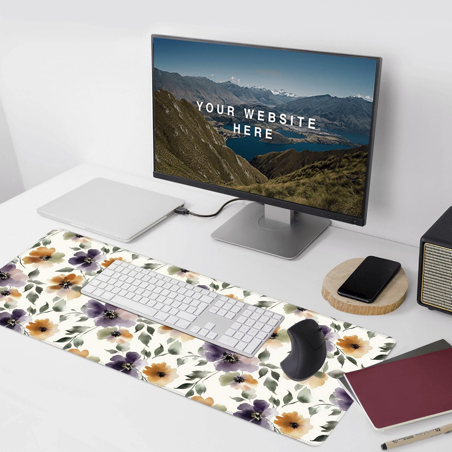 Watercolor Floral Large Mouse Pad,Gaming Keyboard Desk Pad,Extended Mouse Mat Non-Slip Rubber Base with Stitched Edges for Office Game Home XXL 35.4"x15.7"