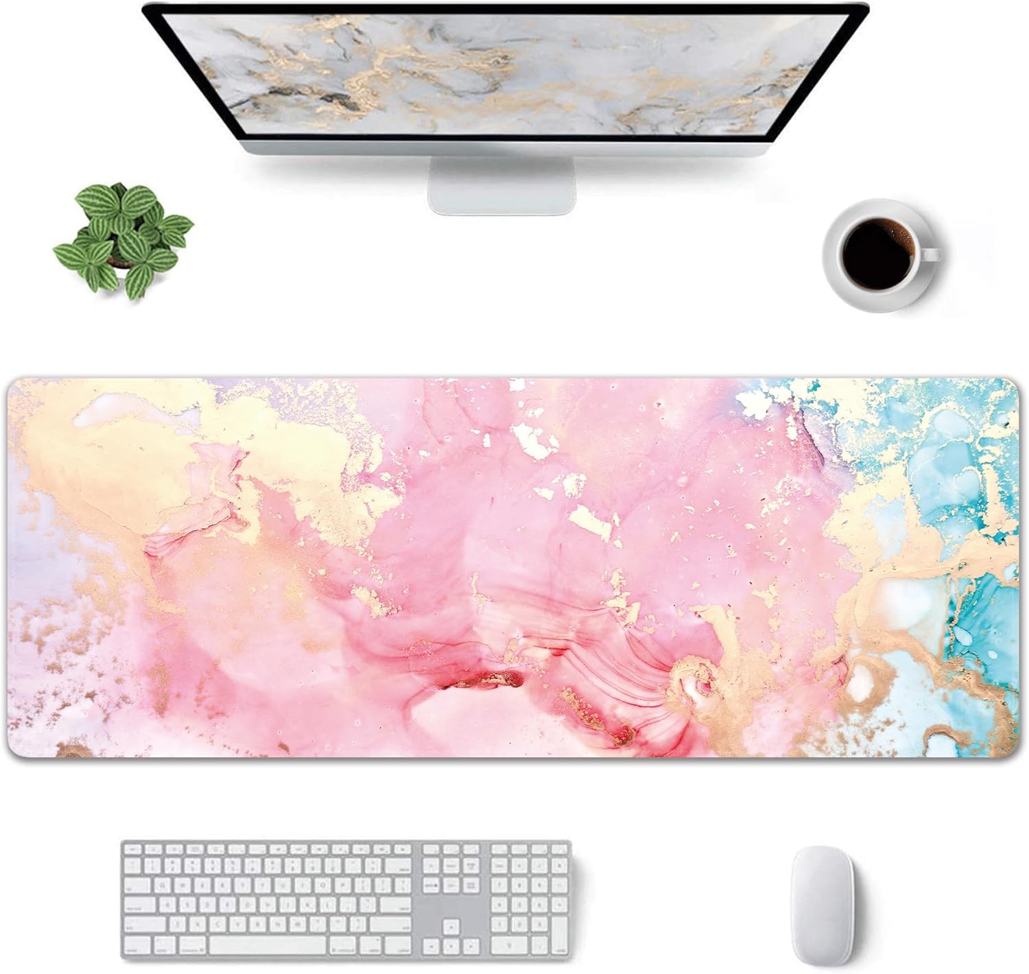 - 【Cute Cool Pattern】:Cute pink marble pattern design for large desk pad,Various styles are suitable for office school home and gaming.Keyboard pad is a beautiful desk decoration and gift