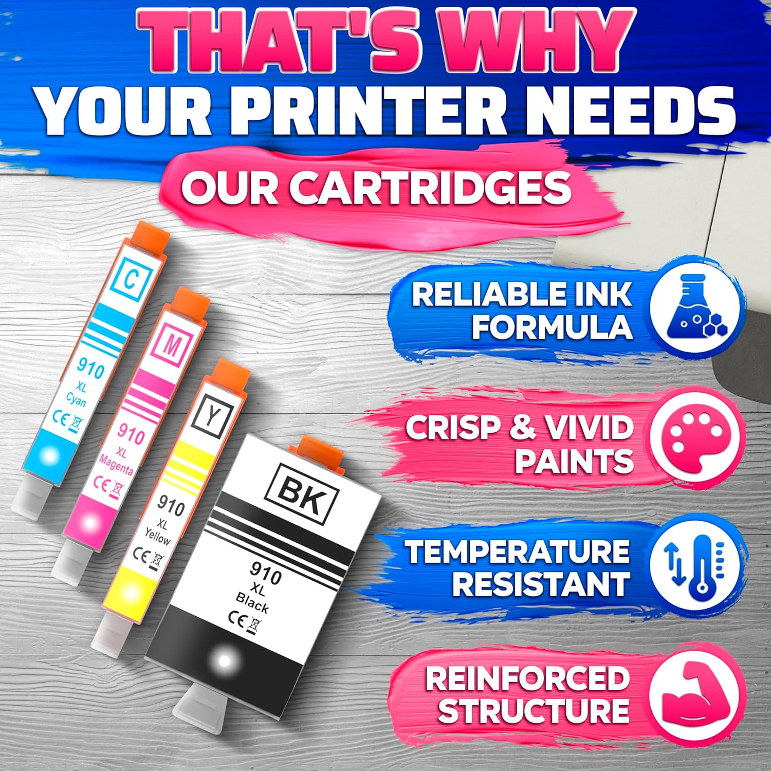 - Great Photo Quality with Inkjet Printer Ink Cartridge: Designed for fluent, quality printing, our color printer ink 910xl cartridges produce vivid, sharp documents and photos, ensuring outstanding