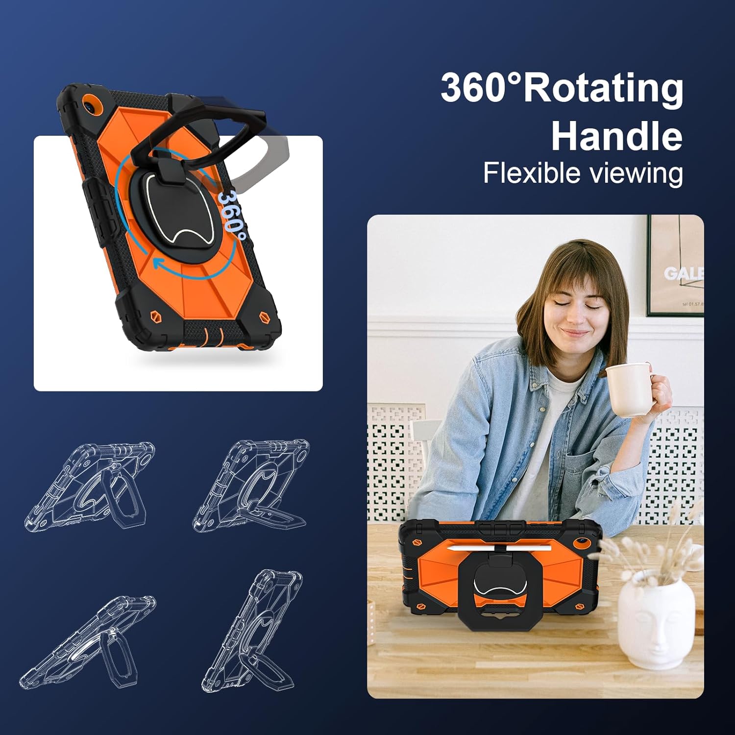 for Galaxy Tab A9 Plus Case 11 Inch, Rugged Case for Samsung Galaxy A9+ Tablet with Screen Protector 360 Rotating Stand Shoulder Strap Pen Holder, 2023 Model(SM-X210/X216/218), Black Orange