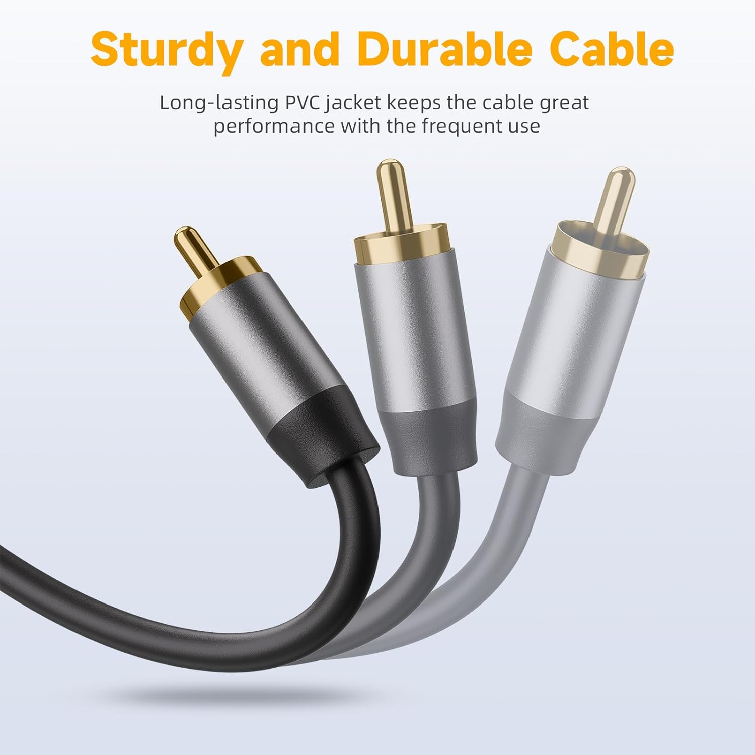 - Gold-Plated Connectors -- 24K gold-plated RCA connectors resist corrosion and provide optimal signal transfer, enhancing audio performance for home theaters, subwoofers, and more.