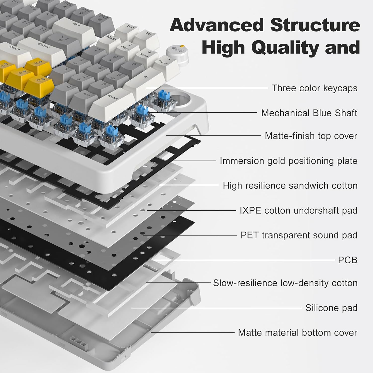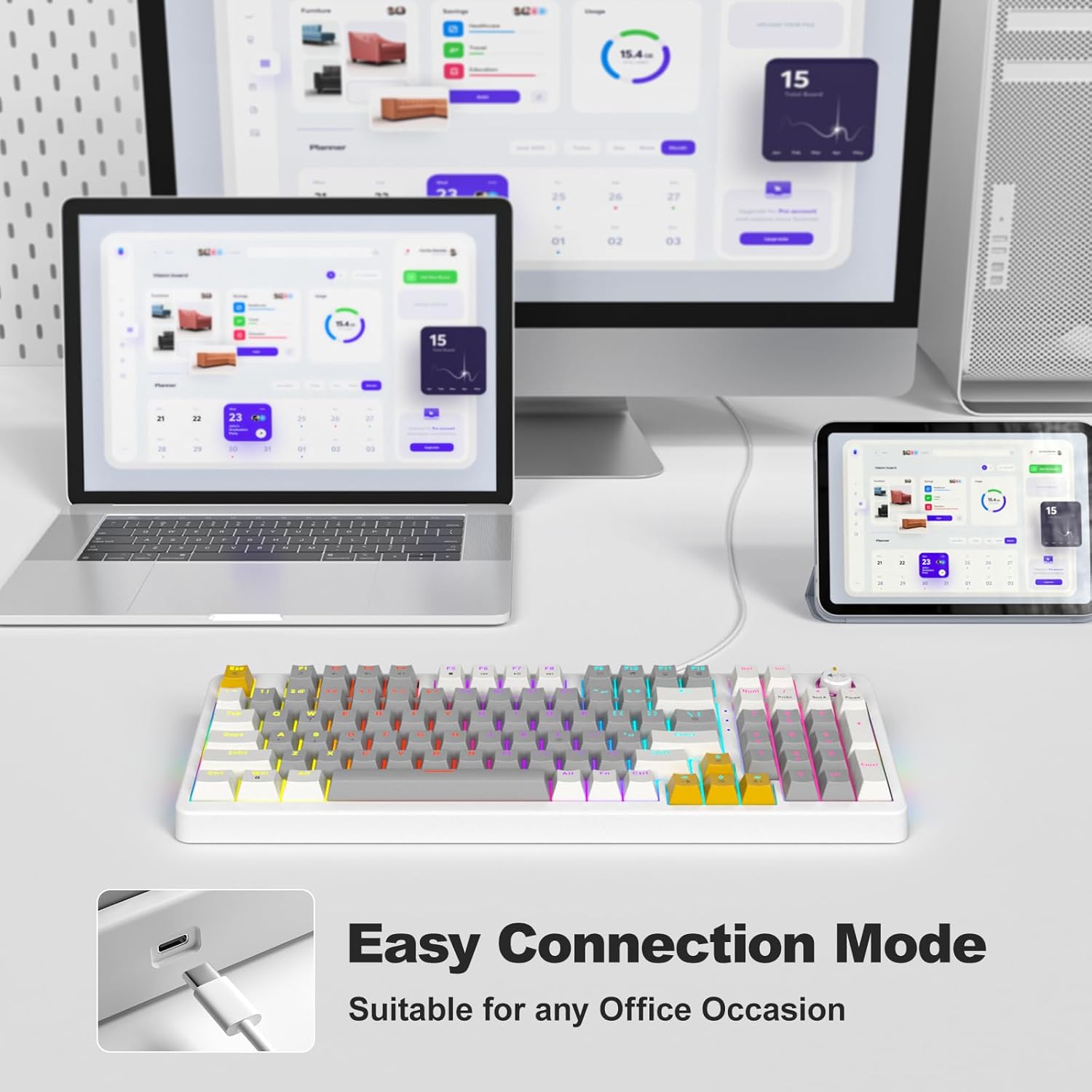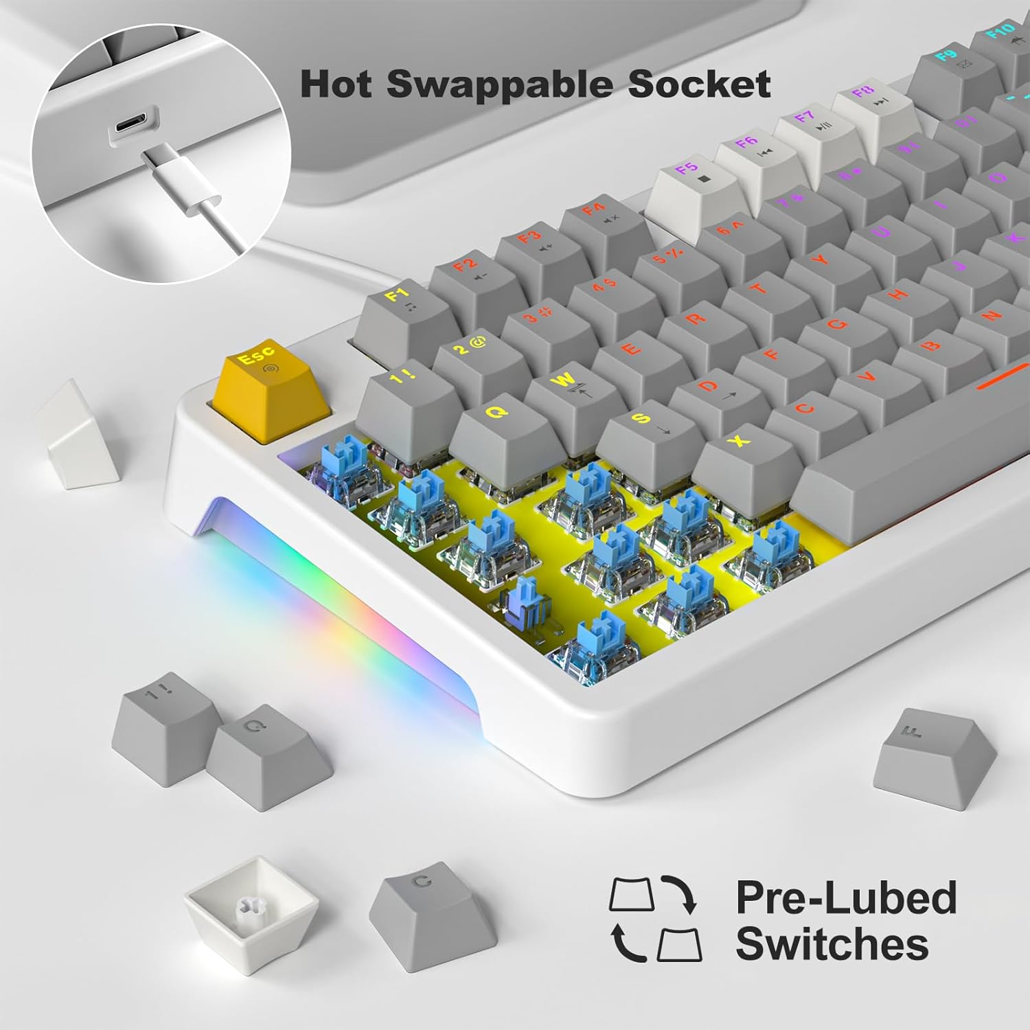 - Compact 96% Layout AK96 Mechanical Keyboard: PBT keycaps resist fading, retain arrow keys & numpad for work/gaming versatility.