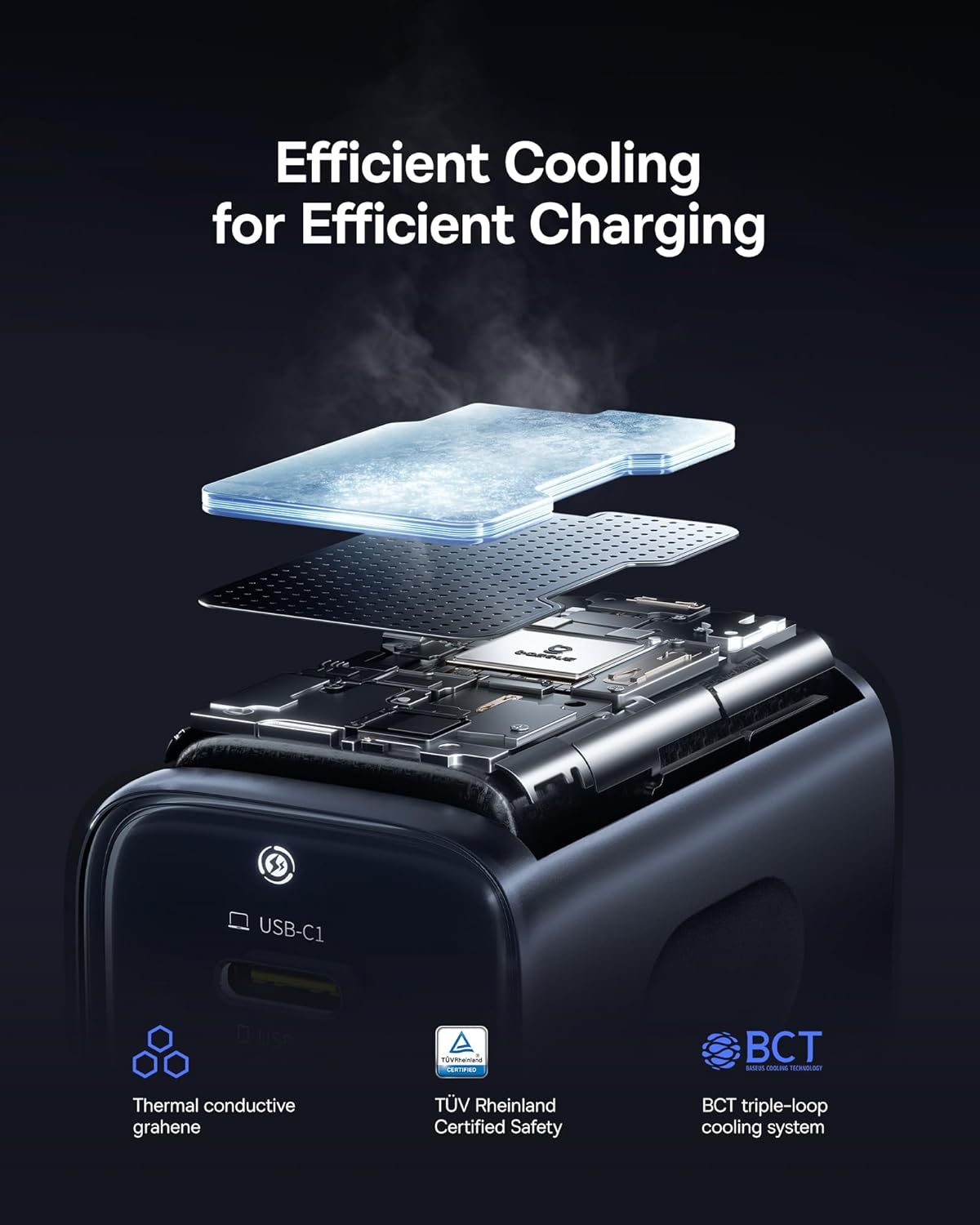 - TÜV Rheinland Certified Safe Charging: Using the same Nawei power chip used by big brands, the conversion efficiency of this fast charger is as high as 92%, reducing energy loss and making charging more stable. It features multiple heat dissipation systems for efficient cooling and charging. And graphene inside this fast charger can help dissipate heat.It also features overcurrent, overvoltage, and short-circuit protections for your peace of mind.
