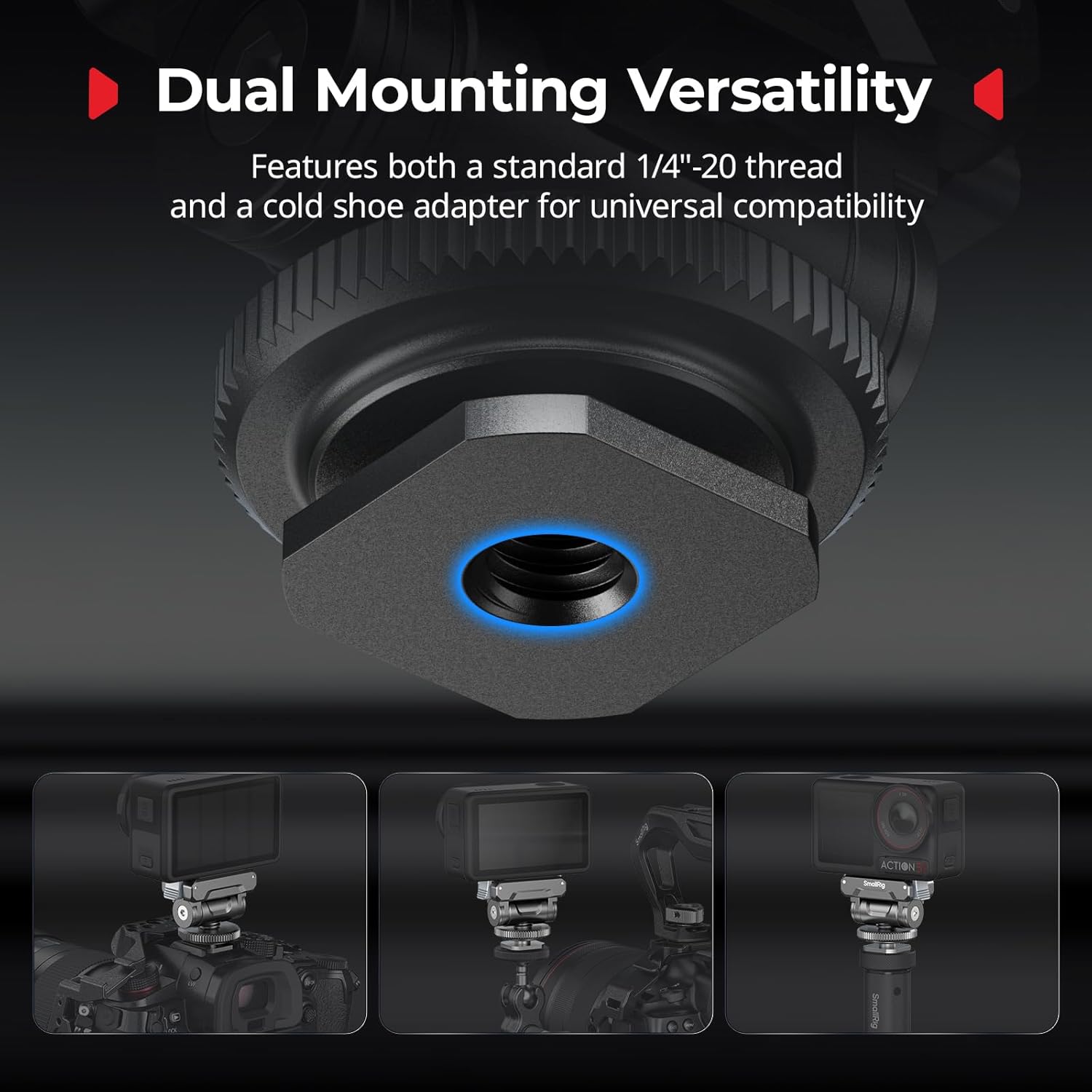 - Dual Mounting Versatility (1/4"-20 & Cold Shoe): Features both a standard 1/4"-20 thread and a cold shoe adapter for universal compatibility. Mounts effortlessly to magic arms (ID 3238B), selfie sticks (ID 5403), cages (ID 5587), tripods, and more.