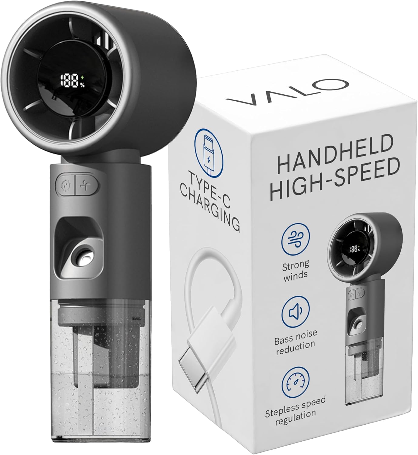 Valo Portable Rechargeable Fan - Mini Cooling Fan for Travel, USB Desk Personal Fan with 4 Speeds, 50ml Tank for Water Cooling Technology, Quiet Operation, 2,000 mAh Battery - Titanium Gray