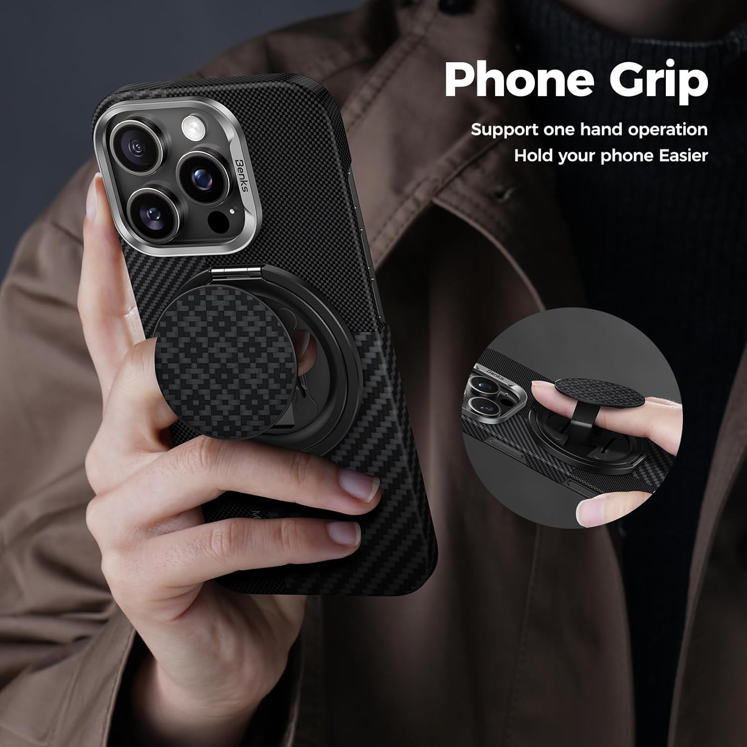 BENKS ArmorPop Magnetic Phone Grip & Stand for MagSafe, 360° Rotation Adjustable Phone Ring Holder for iPhone 17/16/15/14/13/12 Series, Durable Kevlar Design
