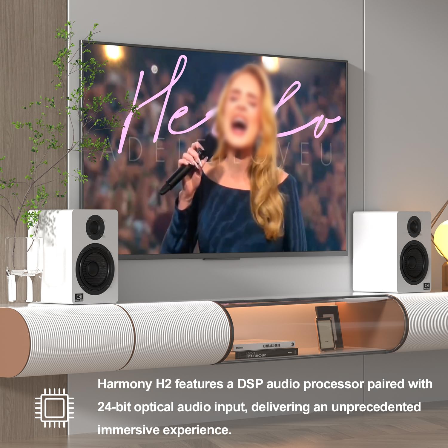 Harmony H2 60W Desktop Speakers with DSP, Bluetooth 5.3, 24-Bit Optical, USB-C, AUX, Silk-Dome Tweeter, Carbon-Fiber Woofer, for Computer, PC Monitor, Gaming (White)