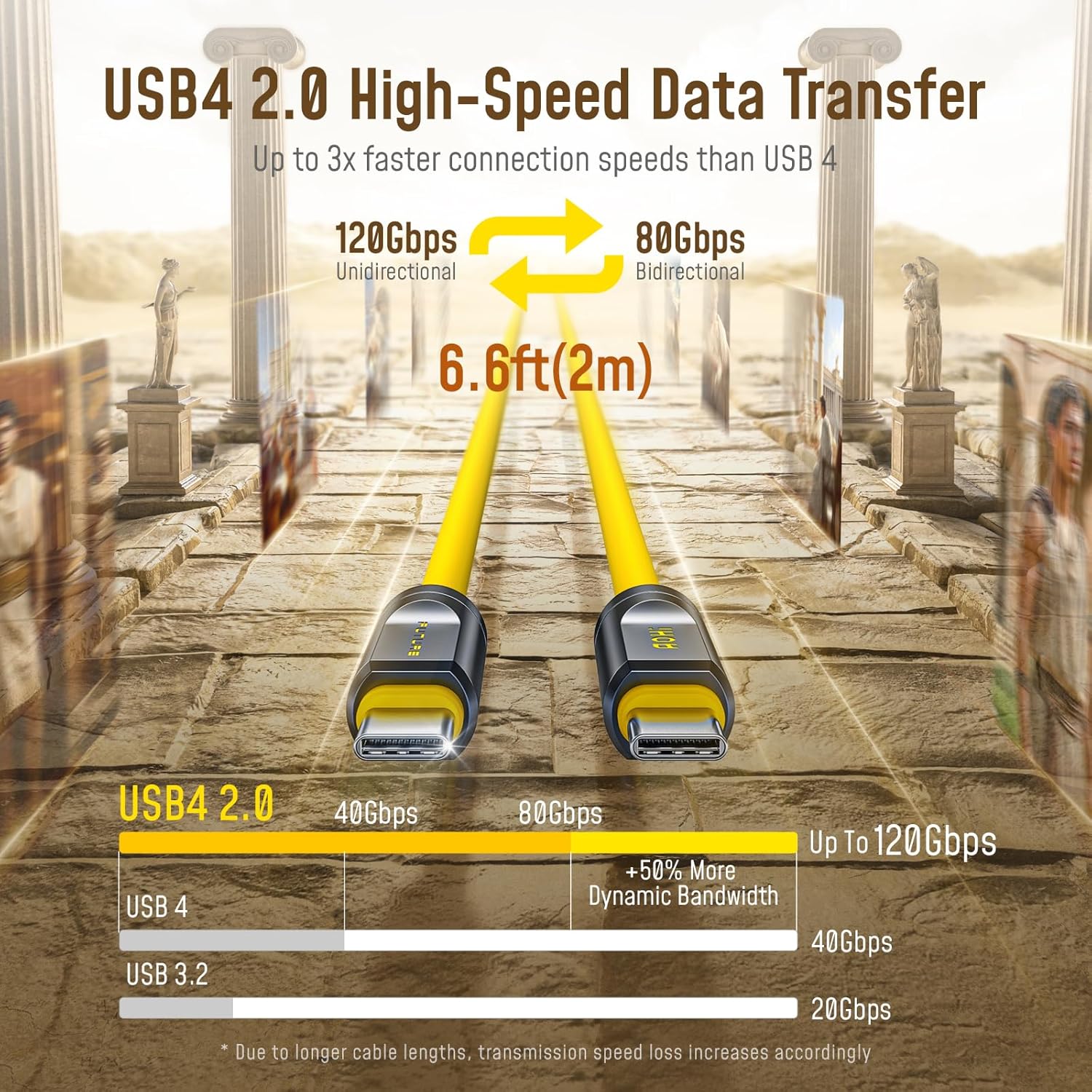 - Special Feature : 240W Ultra Fast Charging, 6.6Feet(2M) USB4 2.0/ USB 3.2, Blazing 80Gbps Data Transfer, Dual 8K or Triple 4K Display, Up to 120Gbps Bandwidth 240W Ultra Fast Charging, 6.6Feet(2M) USB4 2.0/ USB 3.2, Blazing 80Gbps Data Transfer, Dual 8K or Triple 4K Display, Up to 120Gbps Bandwidth