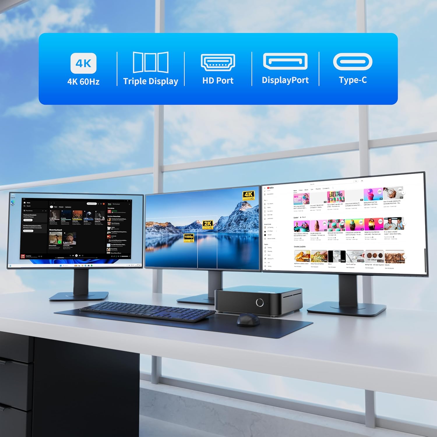 - Mini Computers Equipped with Intel's 12th Gen N95 Processor: With a maximum clock speed of up to 3.4 GHz and 4 cores/4 threads, it has a low thermal design power (TDP) of just 15W. In high-performance mode, memory latency is reduced and bandwidth is increased, allowing it to meet the demands of more demanding applications like Photoshop, Dreamweaver, and 3D Max.