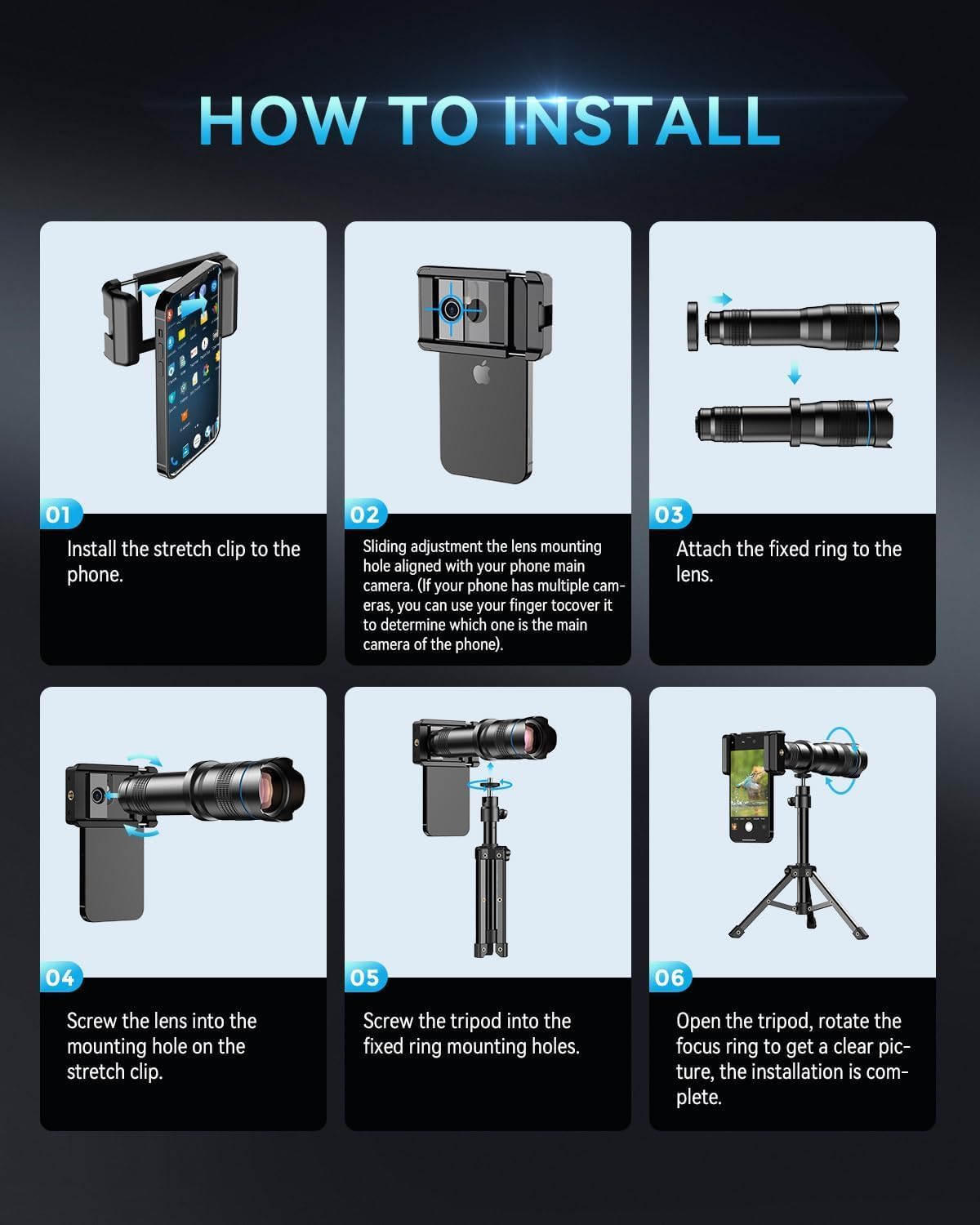 - Come with all you need: This telephoto lens kit come with a stable tripod and a newly designed phone mount. It be used as a standalone telescopic lens to help you view distant objects or mount on phone, stable with tripod to record every amazing moment