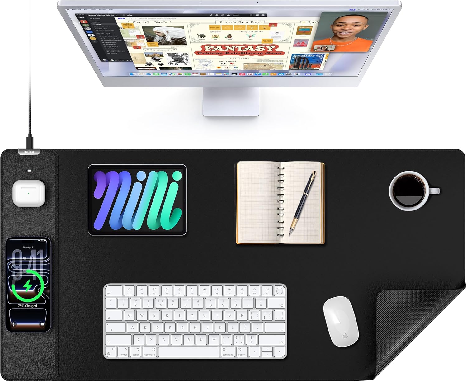 TopMade Mouse Pad with 15W Wireless Charging, XXL Large Leather Desk Mat, Waterproof Gaming Mousepad Home Office Desk Pad Protector, Computer Keyboard Pad, Mouse Mat for for MacBook, PC, Laptop, Black