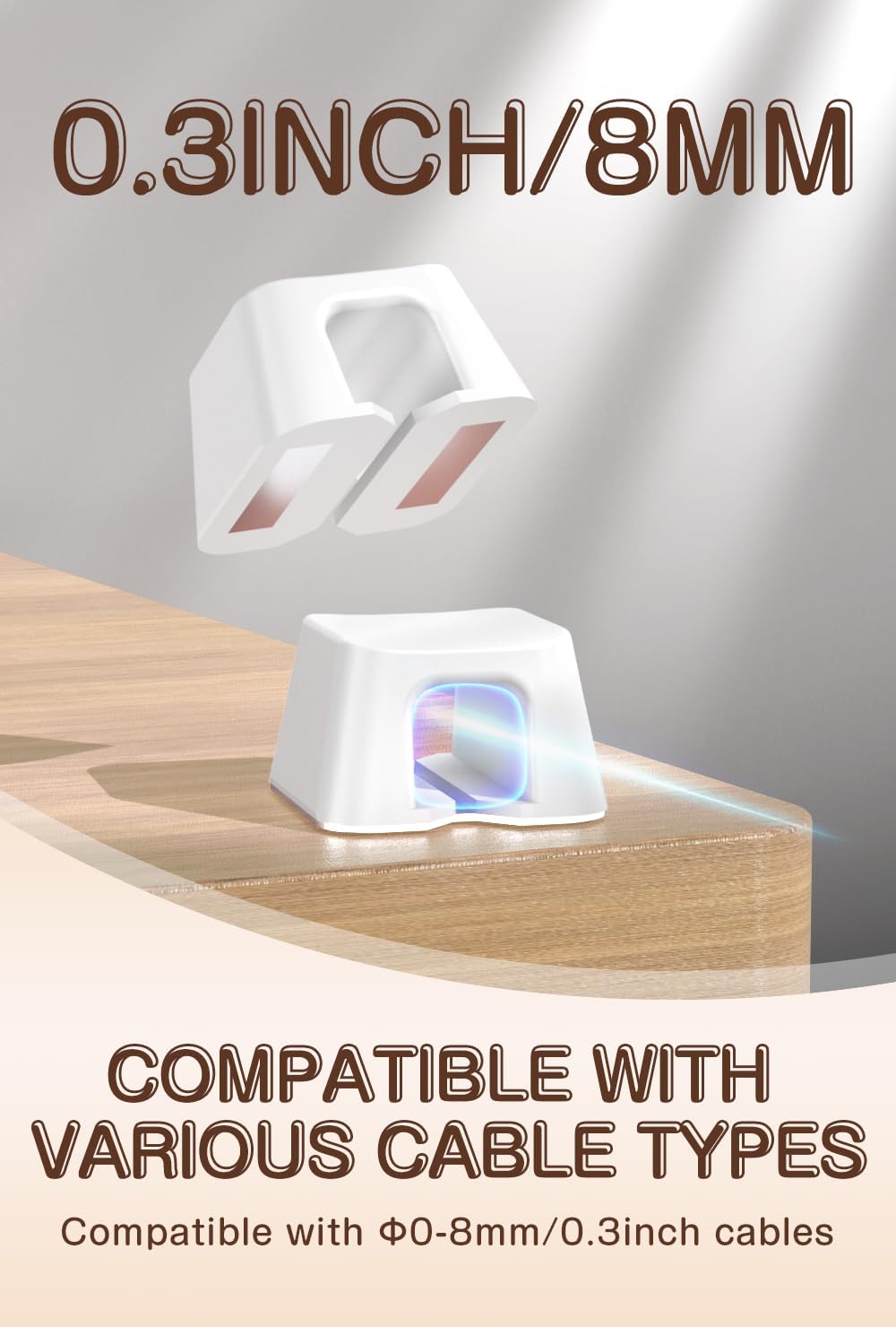 - 【Minimalist Square Cord Holder】Inspired by keyboard keys, the square shape blends into modern setups effortlessly. The sleek white finish adds a clean, refined touch to your workspace, nightstand, or kitchen counter.
