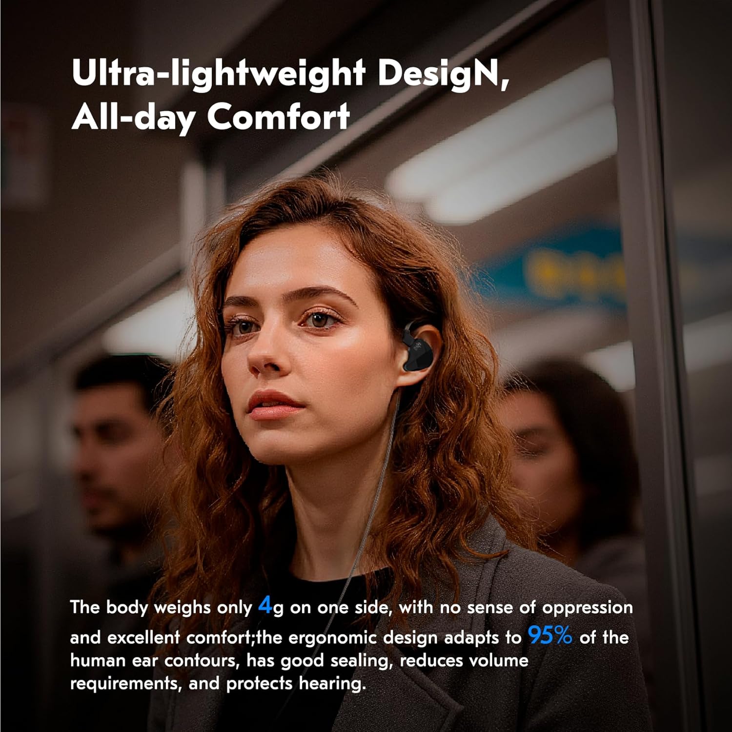 - 【The Comforts You Were Looking For】 We didn't just focus on sound quality, but also ultra-lightweight material and ergonomic shape, providing maximum comfort and lightness. A single iems weighs only 4g, wearing without pressure. There're also 3 sets of soft eartips for different ear sizes. Wrap-around ear design keeps earbuds from slipping out while working out