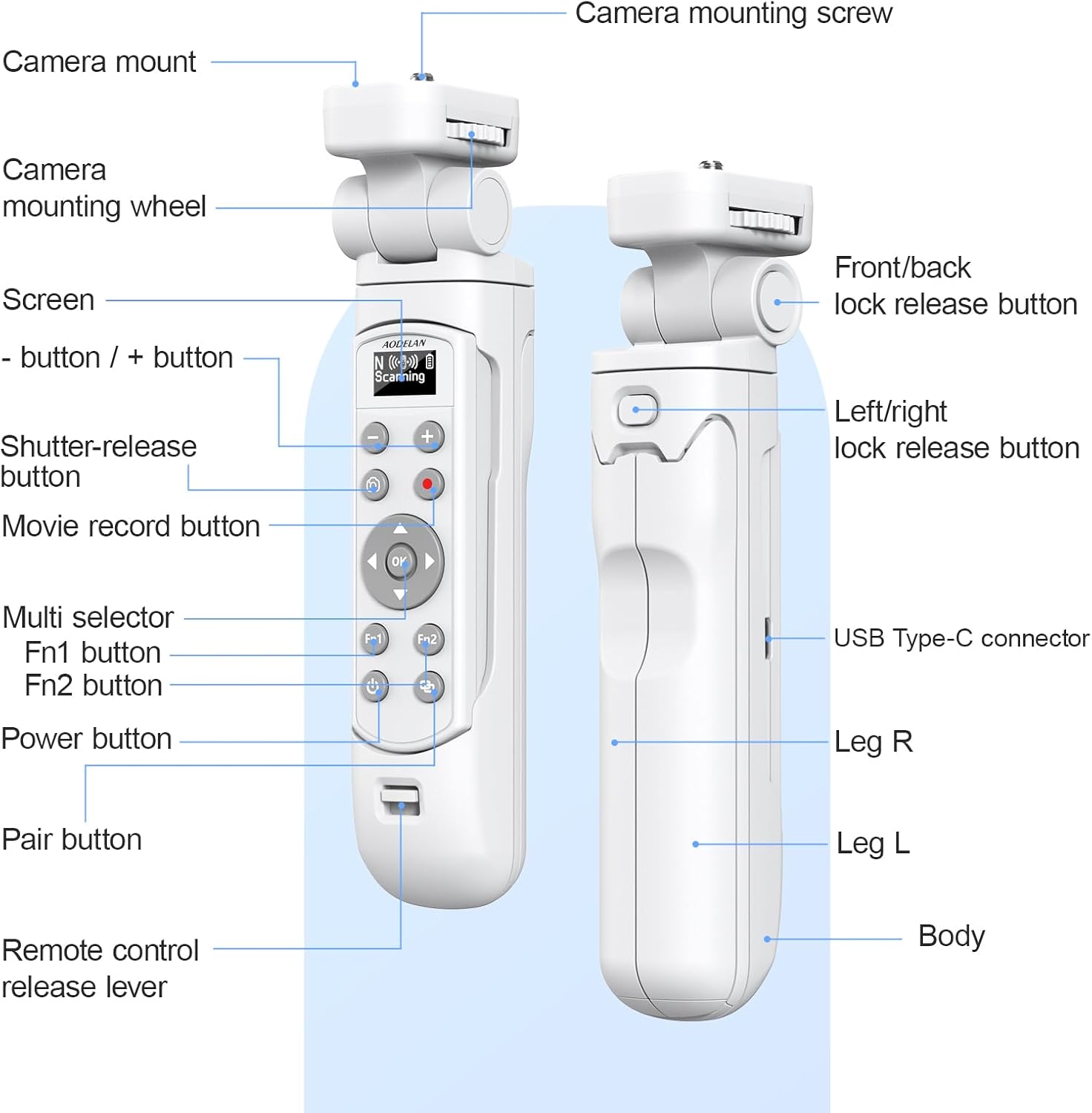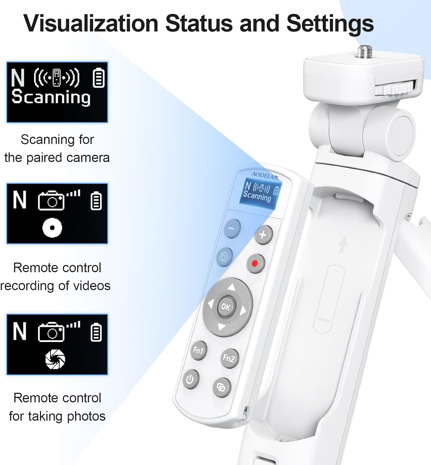 - Multi Functional Wireless Remote Control: The AODELAN shooting tripod is equipped with a wireless remote control, which can be remotely controlled without touching the camera.This remote control supports shooting still photos, short videos, Bulb shooting.It has a 360 ° omni-directional remote control, and the remote control distance can reach 10m/32.8 feet. Please adjust the camera to the appropriate mode.