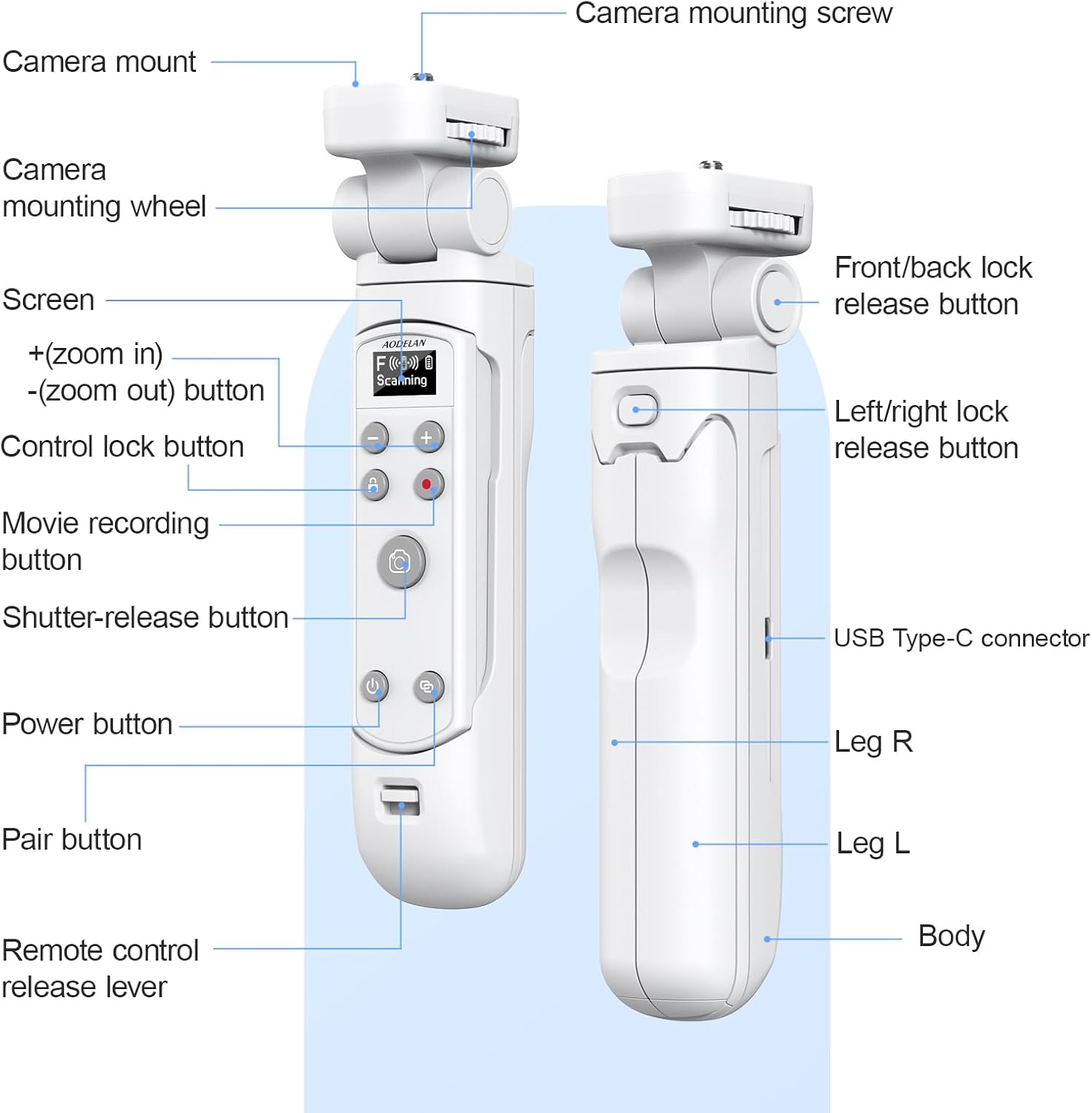 AODELAN for Fujifilm Camera Tripod with Rechargeable Wireless Shutter Release,Shooting Grip Remote Control Handle for Fuji X-T3,X-T4,X-T5,X-T30,X-T30 II,X-T50,X-H2,X-H2S,X-S10,X-S20,X100 VI,X-M5