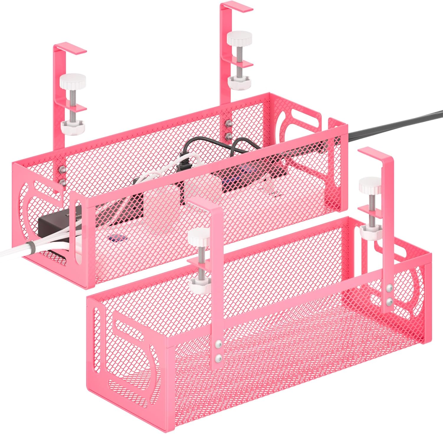 Under Desk Cable Management Tray, 15.7'' No Drill Steel Desk Cable Organizers, Wire Management Tray Cable Management Rack (2 Pack-Pink)