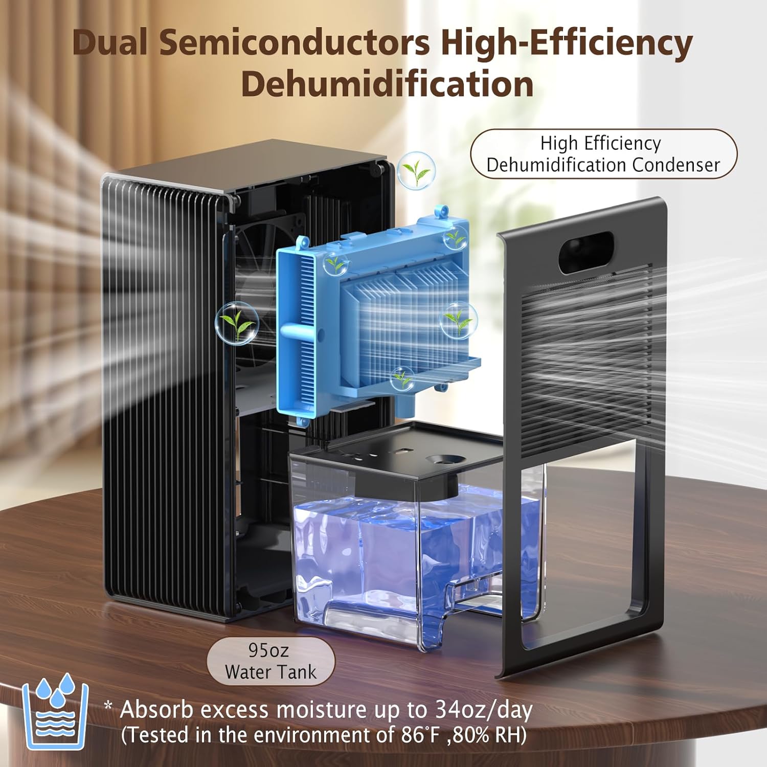 - ADVANCED HOME DEHUMIDIFIER: Our dehumidifier adopts semiconductor condensation technology with quiet operation. It efficiently removes moisture from the air to ensure a comfortable life.