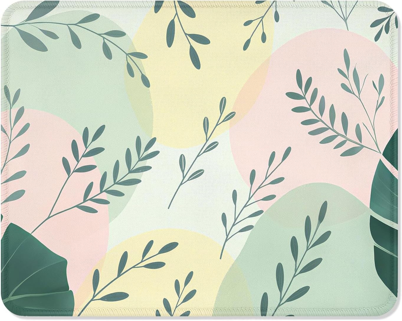 ITNRSIIET Mouse Pad Non-Slip Rubber Base Smooth Surface Stitched Edges Waterproof Durable Compatible with All Mice for Office & Gaming, Desk Accessory, 10.2x8.3x0.12 inch, PastelFoliage