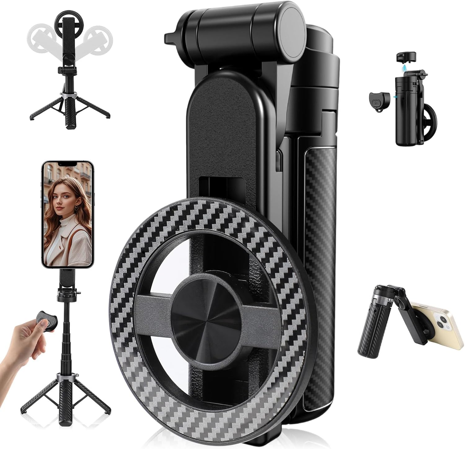 - Magnetic 4-in-1 Selfie Stick: This 360° rotating magnetic selfie stick combines a selfie stick, tripod, and magnetic phone holder in one compact and portable device. It's perfect for selfies, group photos, live streaming, or travel vlogging