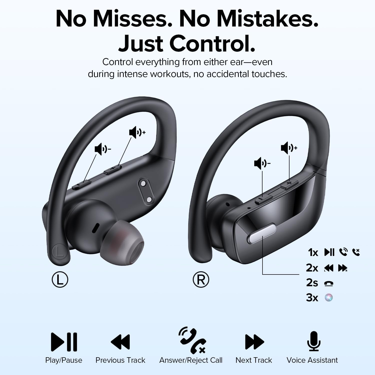 - Precise Controls. Powerful Sound: Control your music and calls with tactile buttons—no more accidental touches. These sport wireless ear buds deliver deep bass and crisp highs for an immersive listening experience on iOS, Android, tablets, laptops, and more.