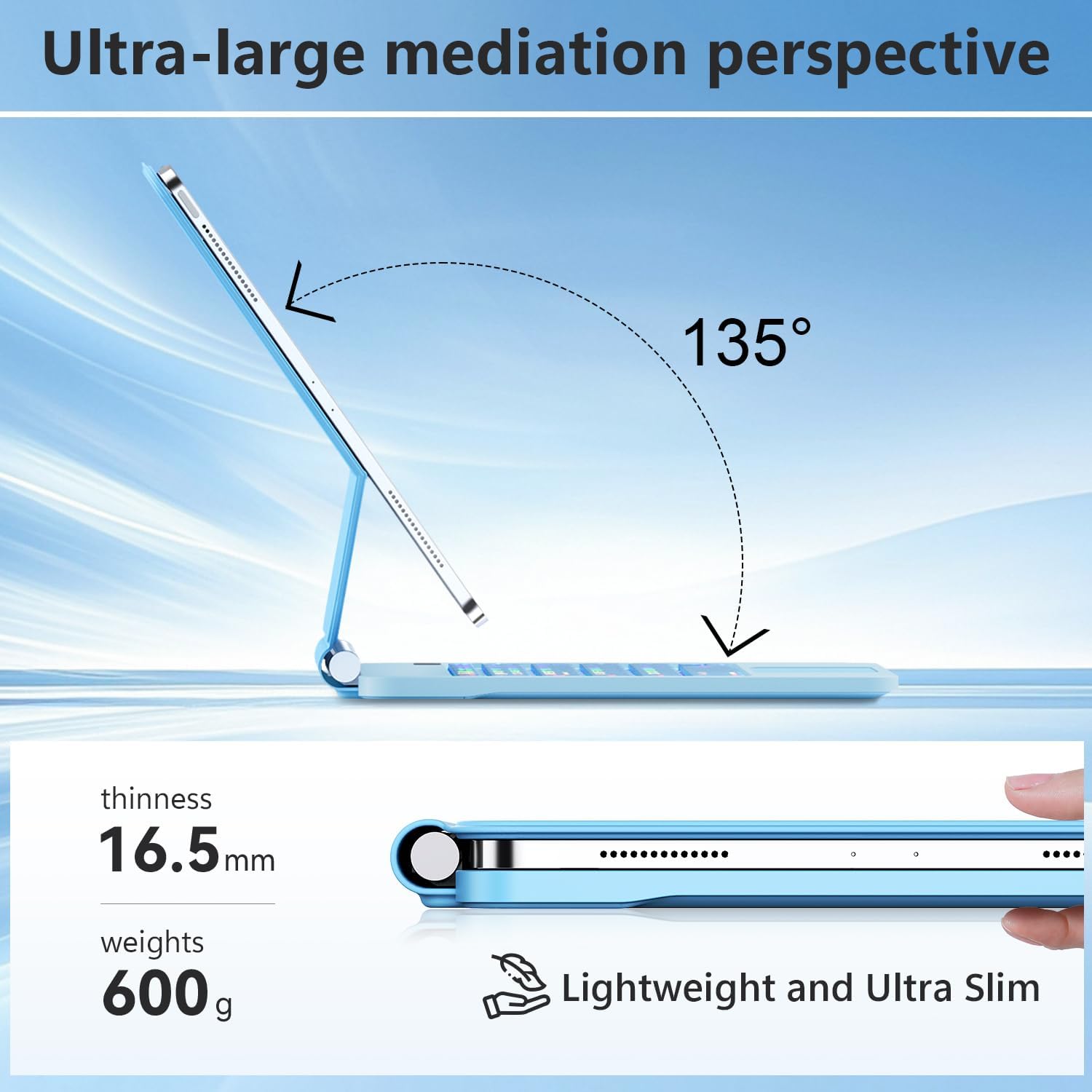 Keyboard Case for iPad Air 13 inch,iPad Pro 12.9 inch (3/4/5/6th Gen),Easy-Set Floating Cantilever Stand Magic Magnetic Backlit - Multi-Touch Trackpad Keyboard Case for iPad (Light Blue)
