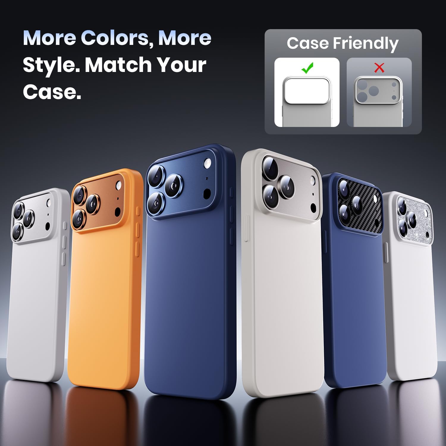 - 【2025 Upgraded Full-Coverage Design】Hoerrye for iPhone 17 Pro Max Camera Lens Protector Made with premium materials: industry-leading 9H+ tempered glass, aerospace-grade aluminum alloy, and sapphire crystal. Features a 3D 1:1 full-coverage integrated design for maximum protection while preserving your camera’s original look. Fully case-compatible.
