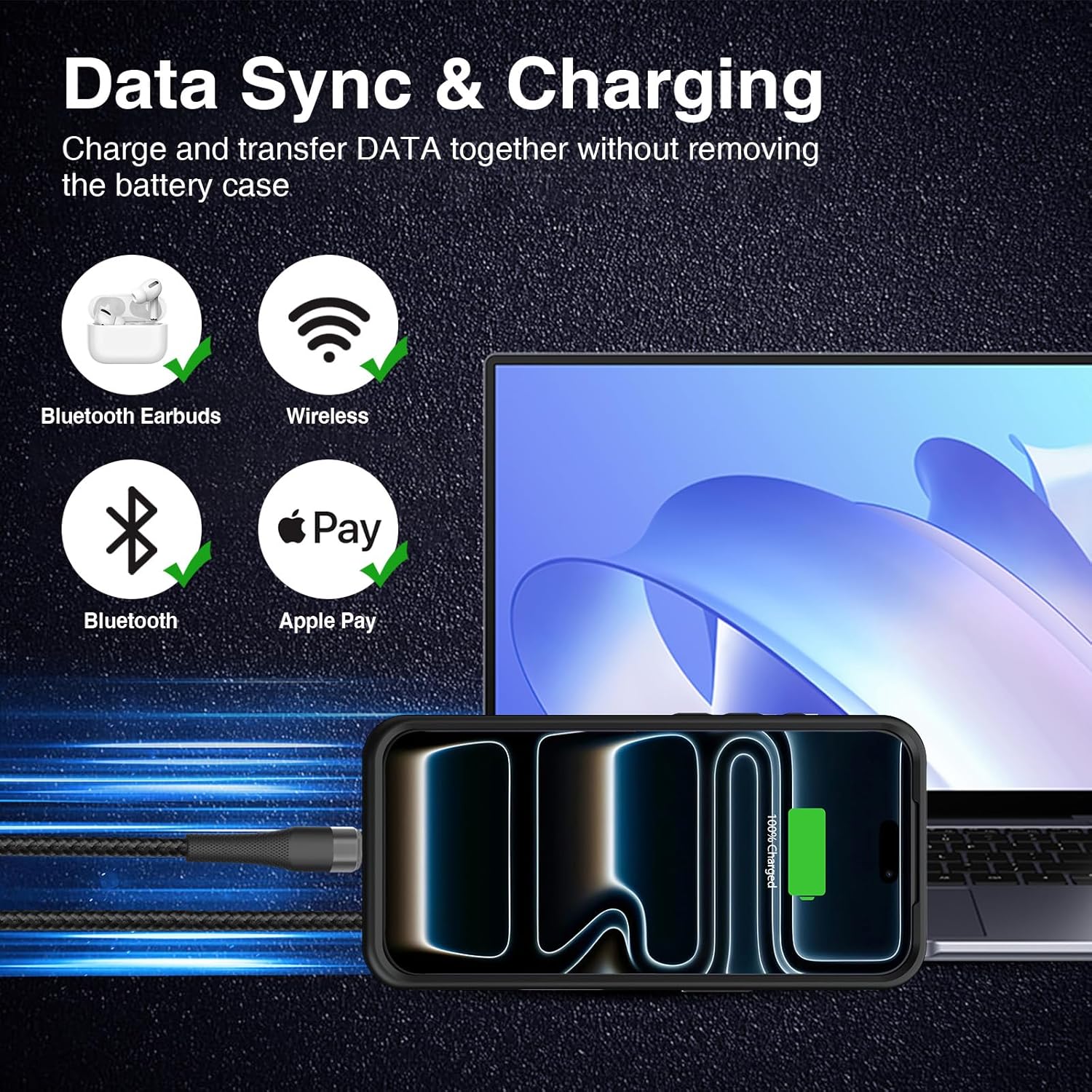 - ⚡【Sync-Data Support】🔋①The battery case for iphone 17 Pro Support data& transmission sync-through technology that conveniently sync your Phone to your Macbook,PC or laptop without taking the charging case off, it is very convinient for your working. ② What's More: You can simultaneously charge the Phone and battery charger case by the charging cable,and the phone will be charged first, followed by the battery case charger for iphone 17 Pro.