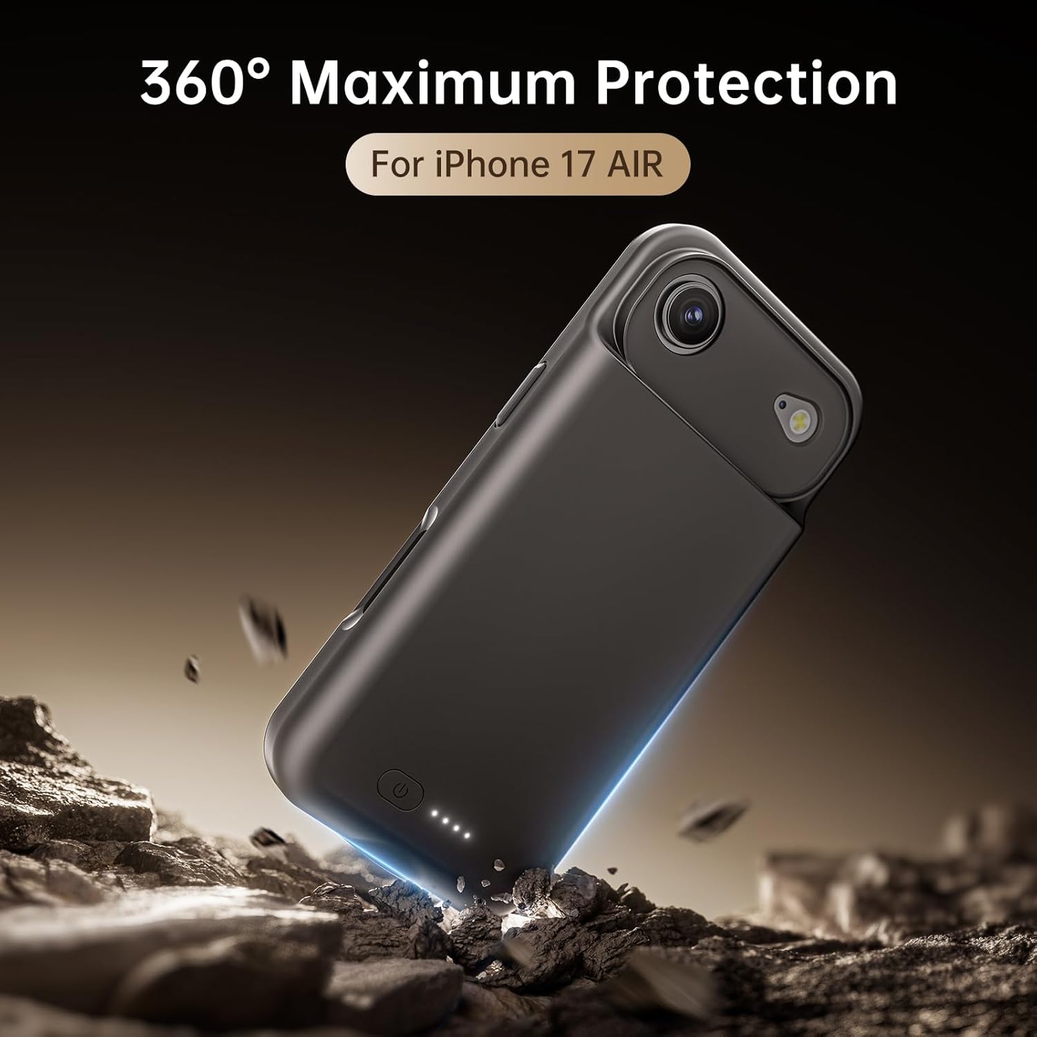 - ⚡【Charging & Protection】🔋This juice box for iphone 17 AIR come with intelligent integrated circuit,which can protect your phone from overcharging,overheating, over-current, short-circuit. It's bumper and hard shell back design offers complete protection for your Phone from scratches, daily wear and tear. Raised bezels and screen protector offer broadside and surface protection. It combines a power bank and a protective case, supply your phone more power and protect your phone safe when using!