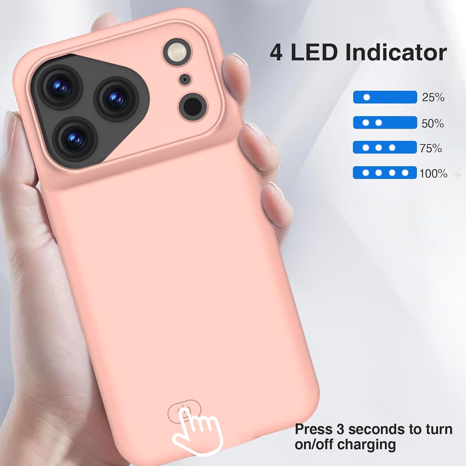 - ⚡【Slim & Light-Weight & Real 8500mAh Capacity】🔋Equipt with upgraded battery chip and component shell, the battery case for iPhone 17 Pro is slim and light-weight,it is very portable and suitable for daily using. And the 8500mAh real battery power of the charging case for iphone 17 Pro can add 150% extra power for your phone. The best choice for travel and work.【NOTE】:①This battery case ONLY FIT for iPhone 17 Pro(6.3"). ② NOT support Wireless Charging.