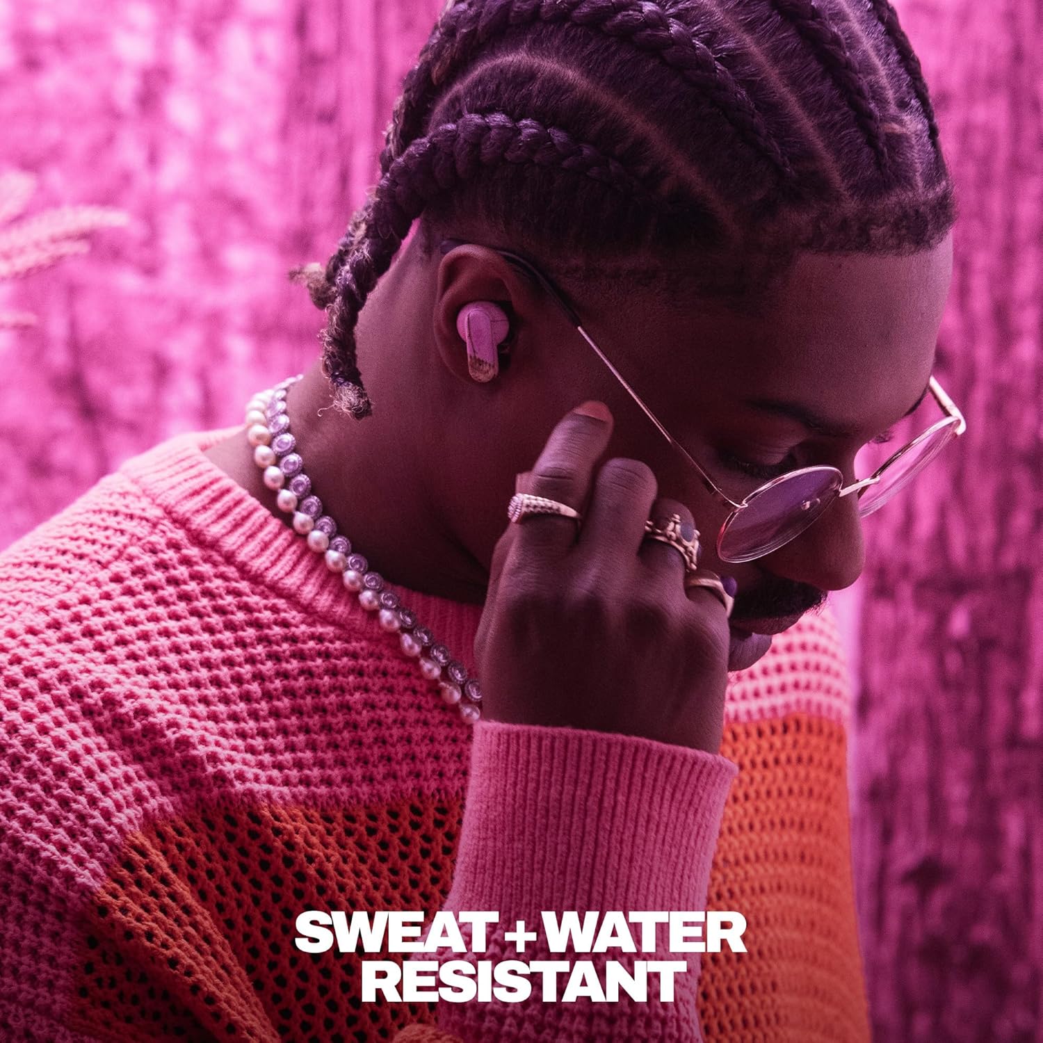 - SWEAT AND WATER RESISTANT. Rated IPX4 with sweat and water resistance, these buds are made to withstand any adventure while blocking out unwanted ambient noise
