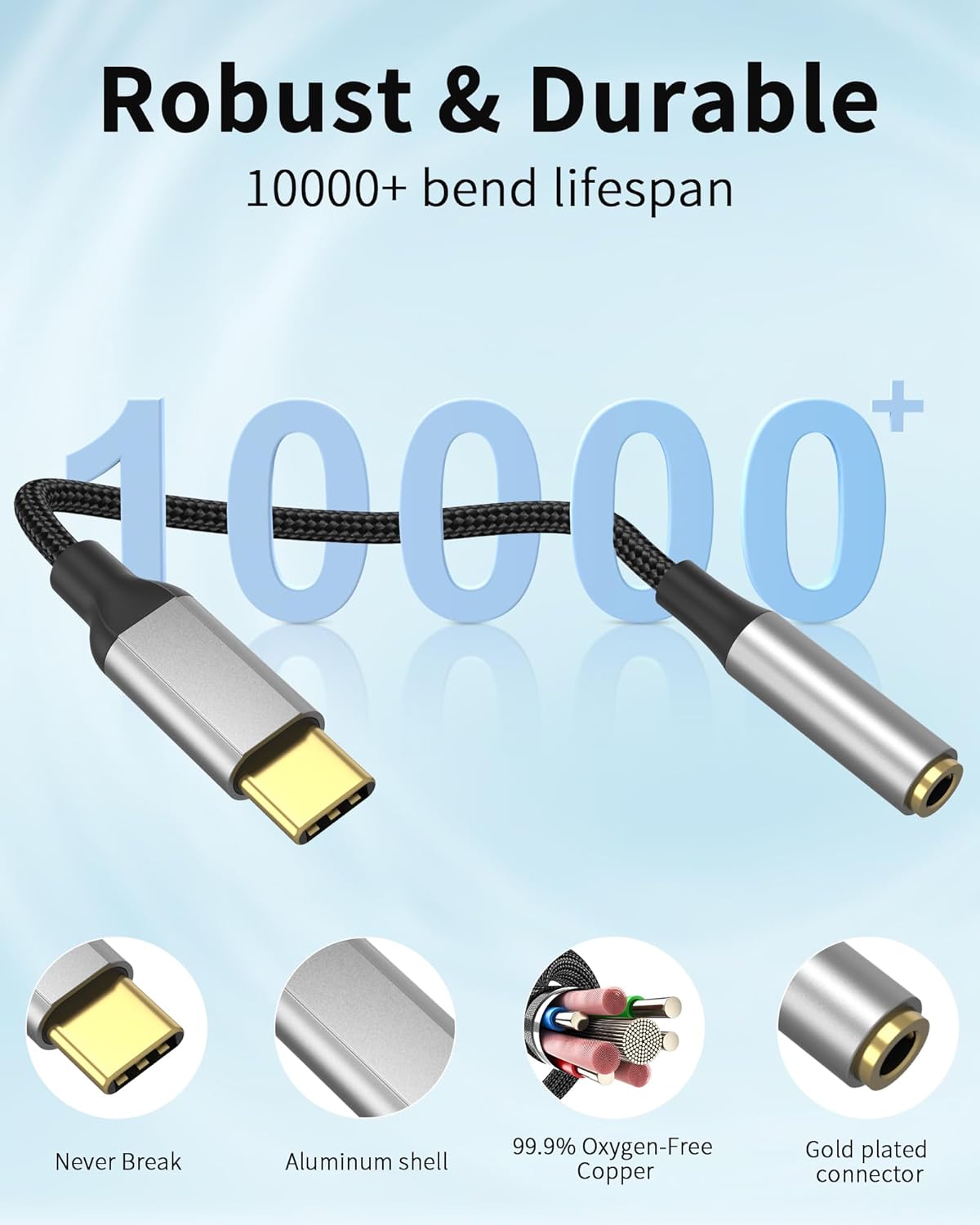 - Universal Compatibility: Our USB C to AUX Adapter compatible with iPhone 16/15, Galaxy S24/S23/S22, iPad, MacBook and most USB-C devices. Supports CTIA standard for mic & volume control.