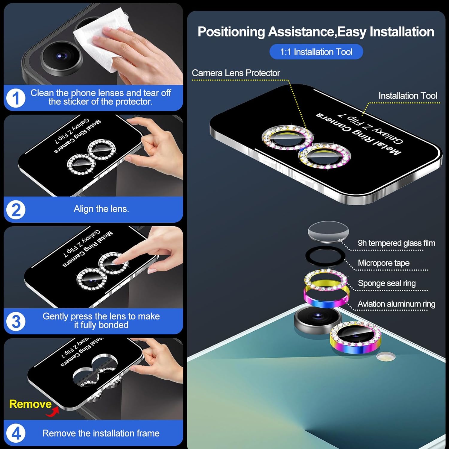 - 【Compatible Model】This ultra-thin camera lens protector only compatible with Samsung Galaxy Z Flip 7. DO NOT FIT other models. Easily fit and match with most phone cases.