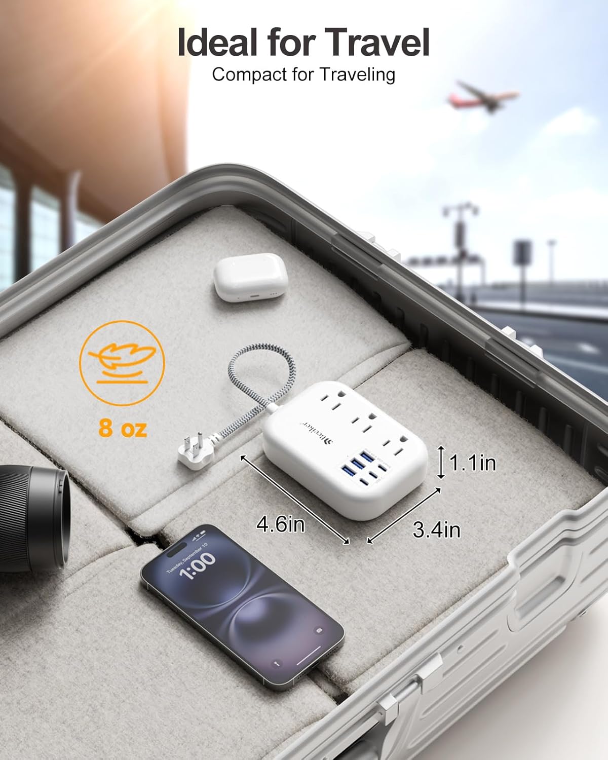 - 【Compact for Travel】-Compact Size and lightweight(8 oz) design to fit into luggage and bag while traveling. The small extension cord 2 ft also can be used in any indoor place with socket, Perfect solution for travel and dorm room,behind the sofa,kitchen,office etc