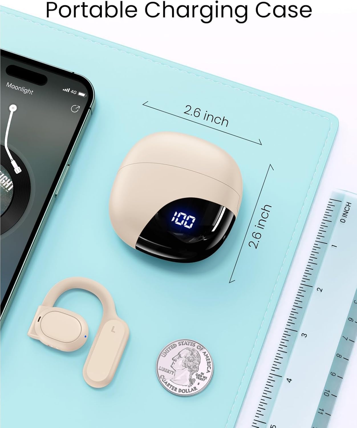 - 80 Hours Playtime and LED Digital Display: Each open ear earbud can play continuously for at least 13.5 hours on a full charge, and up to 80 hours with the charging case. Extra long battery life keeps you away from the hassle of frequent charging. The air conduction headphones case comes with an LED power display, so you can clearly know how much power is left in the case and whether it needs to be charged.
