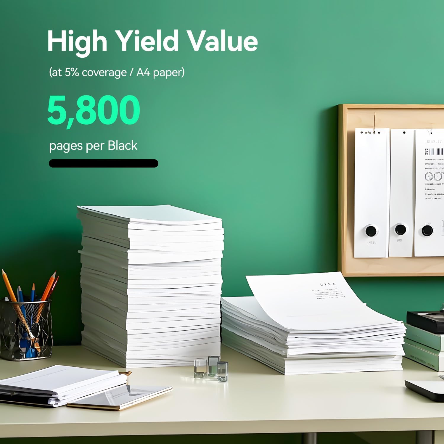 - High Page Yield: One black yields up to 2900 pages each, 2-Black total yield up to 5,800 pages each (at 5% coverage of Letter A4)