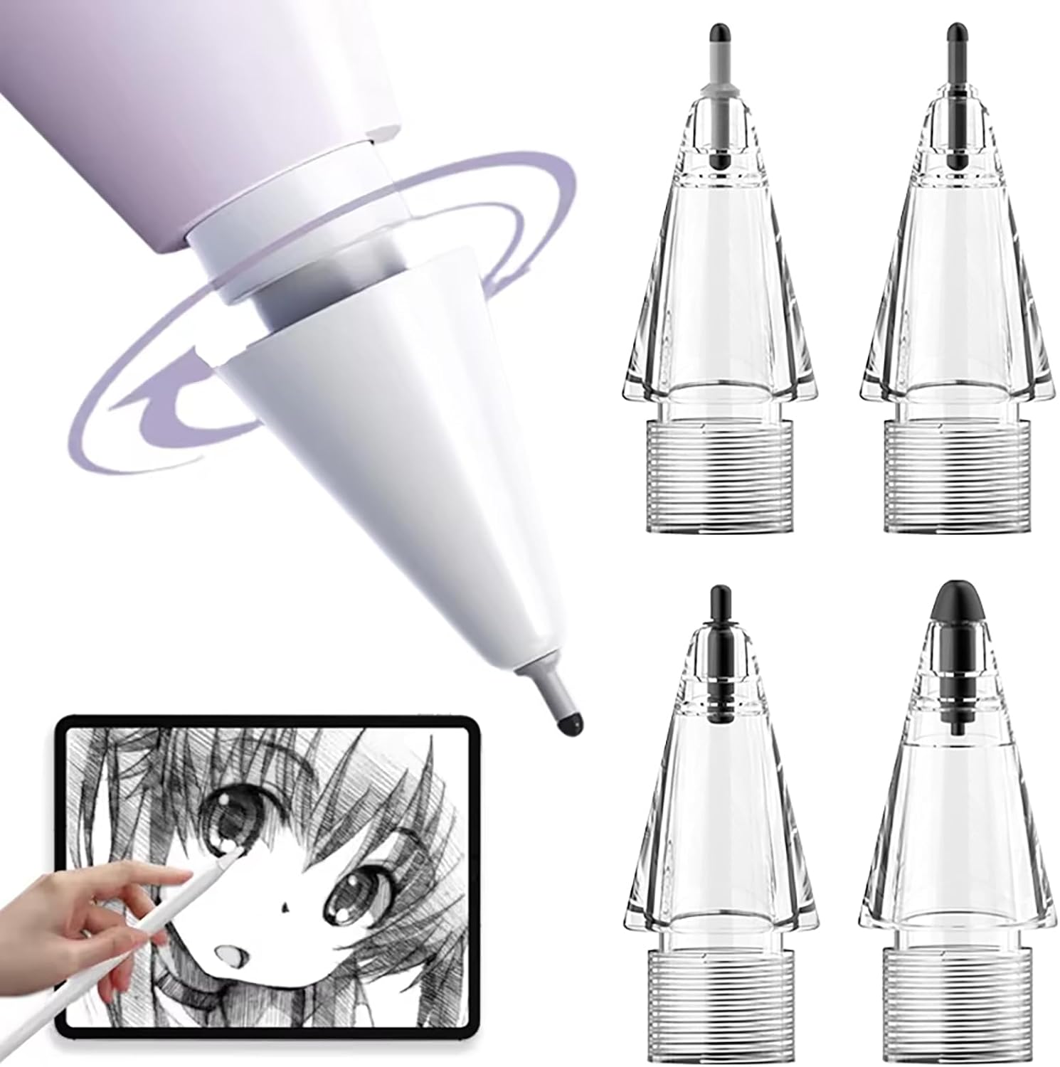 - Multiple Tip Designs: Includes 4 replacement tips with different lengths and shapes to suit various creative needs, such as fine detailed drawing, bold strokes, natural handwriting, and shading, allowing users to customize their Apple Pencil feel and performance