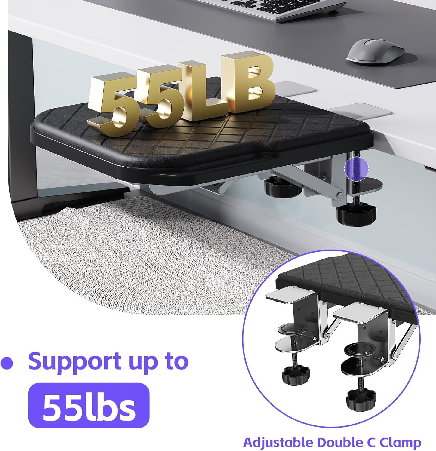 - EASY CLAMP-ON INSTALLATION IN SECONDS: No tools required! Simply attach the arm rest to your desk (up to 4.4" thick) using the adjustable C-clamp. The non-slip padding protects your desk from scratches while keeping the arm rest securely in place. Perfect for home offices, gaming setups, or workspaces.