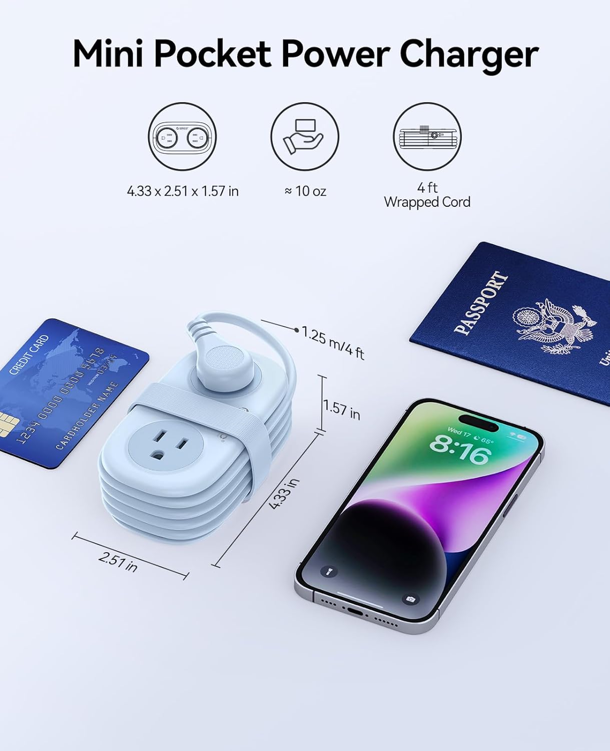 - 【Compact Size & Wrap-Around】The ORICO portable power strip has small size (4.33*2.5*1.6 in) with flexible 4ft retractable wrap-around extension cord. It easy to pack in your luggage without the hassle of managing the wires, ensuring you have easy access to power in various scenes