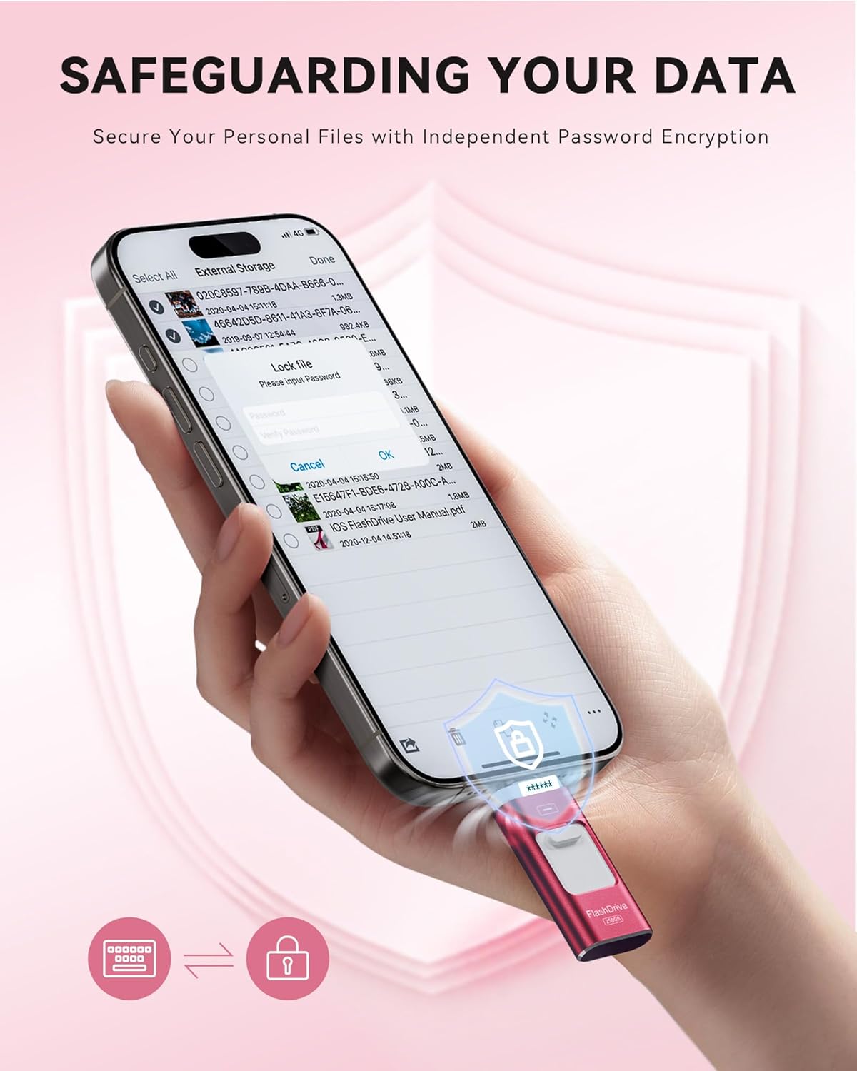 - Lightning-Fast Transfers, Enjoy Anywhere: This iphone storage flash drive for photos uses high-speed ports and high-quality flash memory chips for rapid data transfer, storing your favorite pictures, videos, and music. Whether it's large files, high-resolution photos, or HD videos, it completes the task quickly, saving you time. Seamlessly plug and play via the app on your iPhone or iPad anytime, anywhere. No internet or WiFi required.