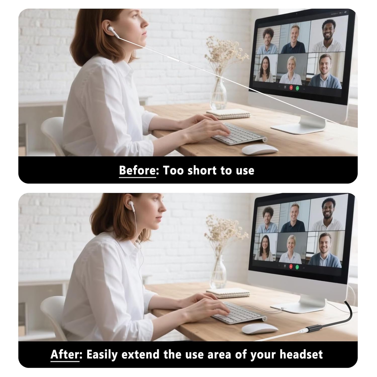 - 【3.5mm Headphone Extension Cable】This 4-pole 3.5mm male to female audio extension cable extends your device through a 3.5mm jack to the desired audio and microphone location. (Note: If you use the TRRS headset with this extension cord, the audio will work properly, but the microphone won't work. It also doesn't work with volume controls on the headset.)