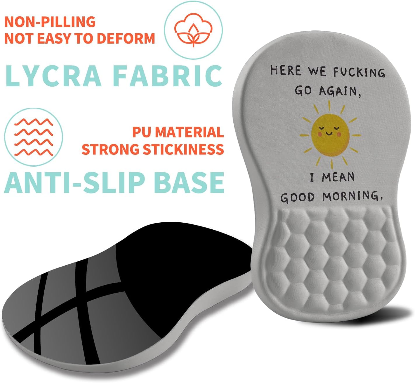 Ergonomic Mouse Pad Wrist Support with Memory Foam Massage Bulge, Carpal Tunnel Pain Relief Mousepad Wrist Rest for Mouse(12x8 inch, Good Morning)