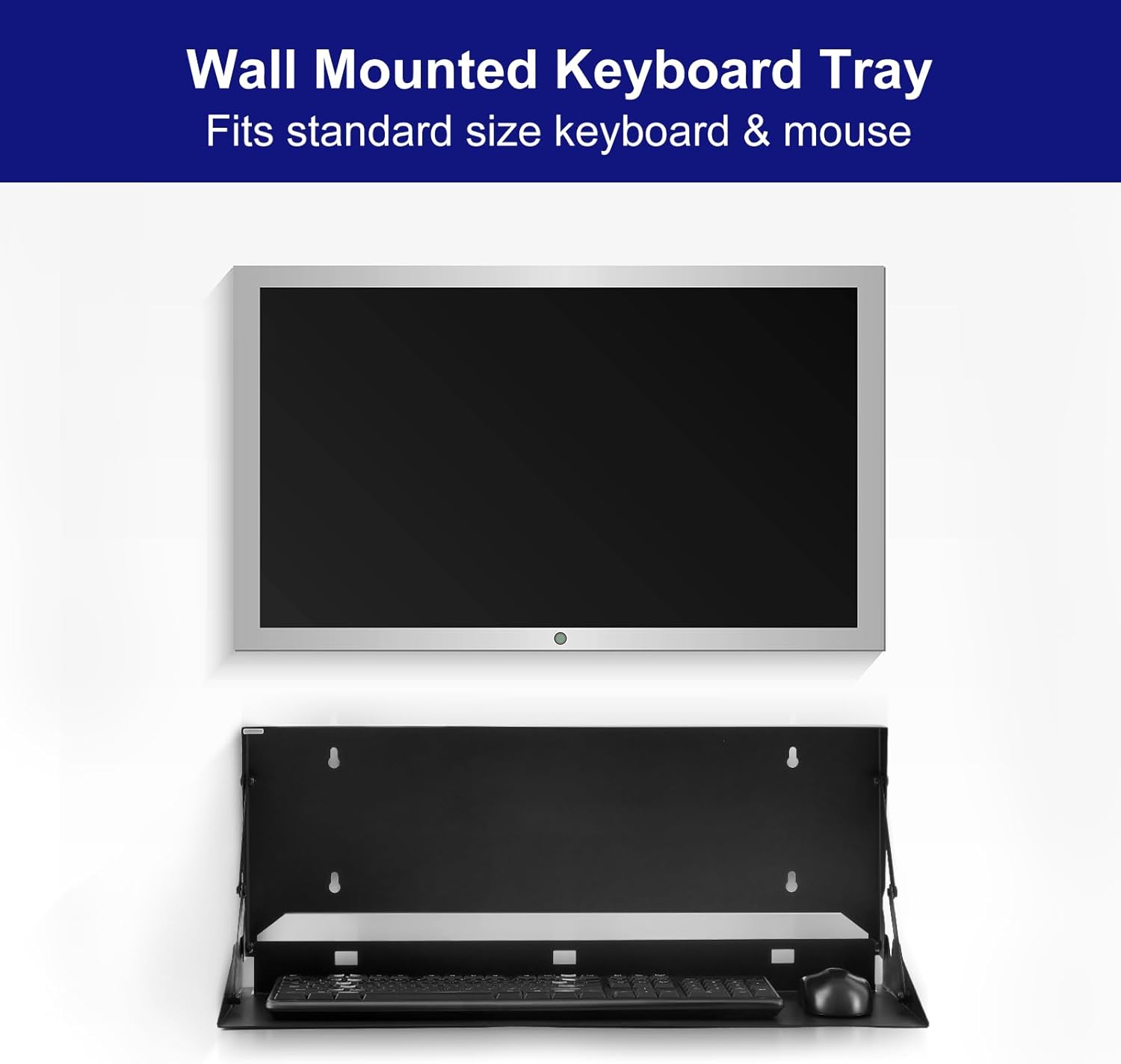- Wall-mounted Keyboard Tray: this wall mounted keyboard and mouse holder measures 23.6 inches in length, 9.9 inches in width, and 2.1 inches in thickness; Crafted from alloy steel with a sleek black anti-scratch coating, it offers withstands daily wear