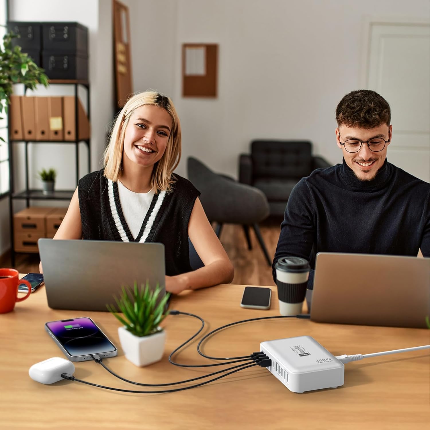 - Universal multi chargers for all devices 450W total: the charger brick including 140W, 30W, 20W 18W, meets all your fast charging needs from laptops to cellphones.