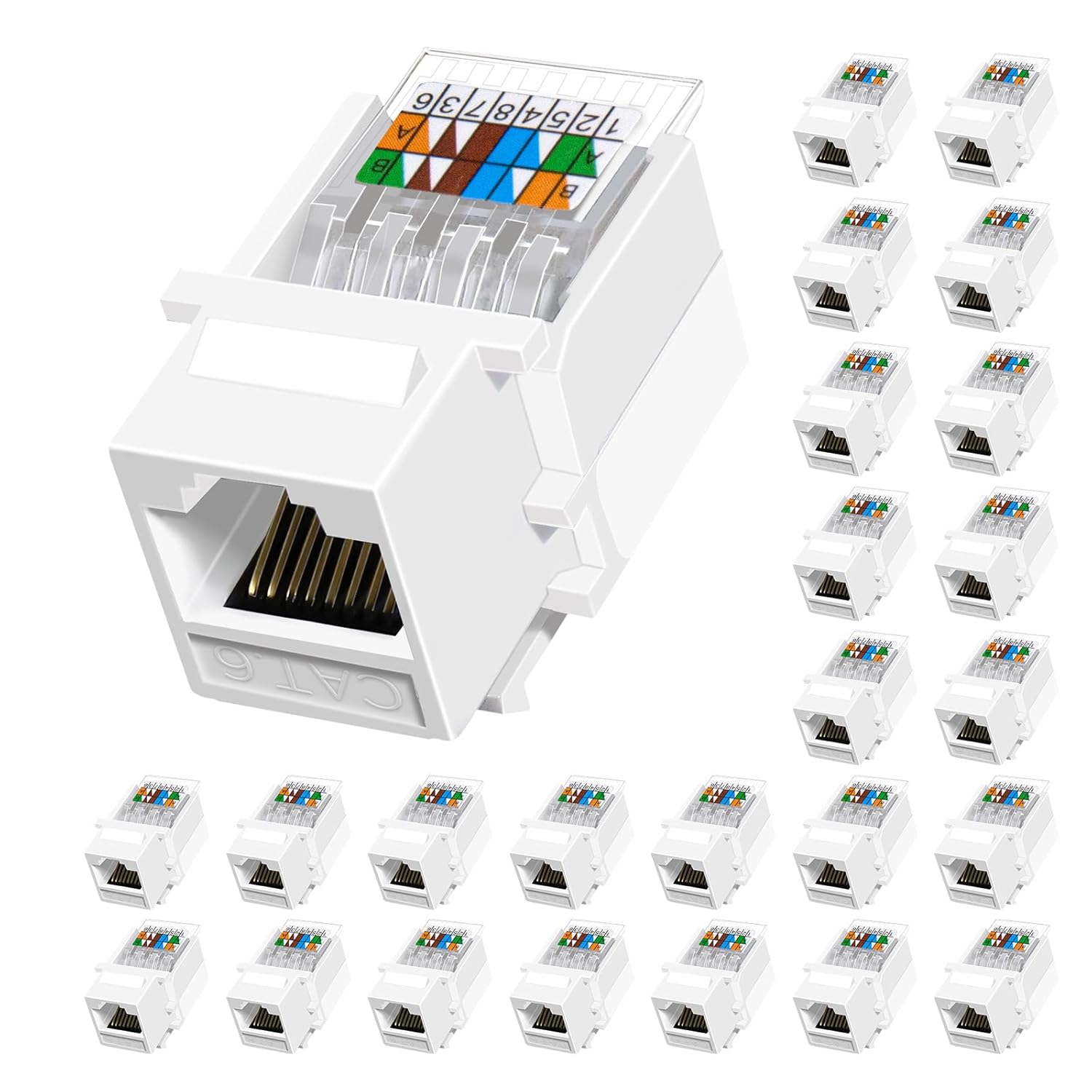 - 【Package Content】Includes 25 pcs Cat6 keystone jacks (white), safe for home, office, and computer room use.