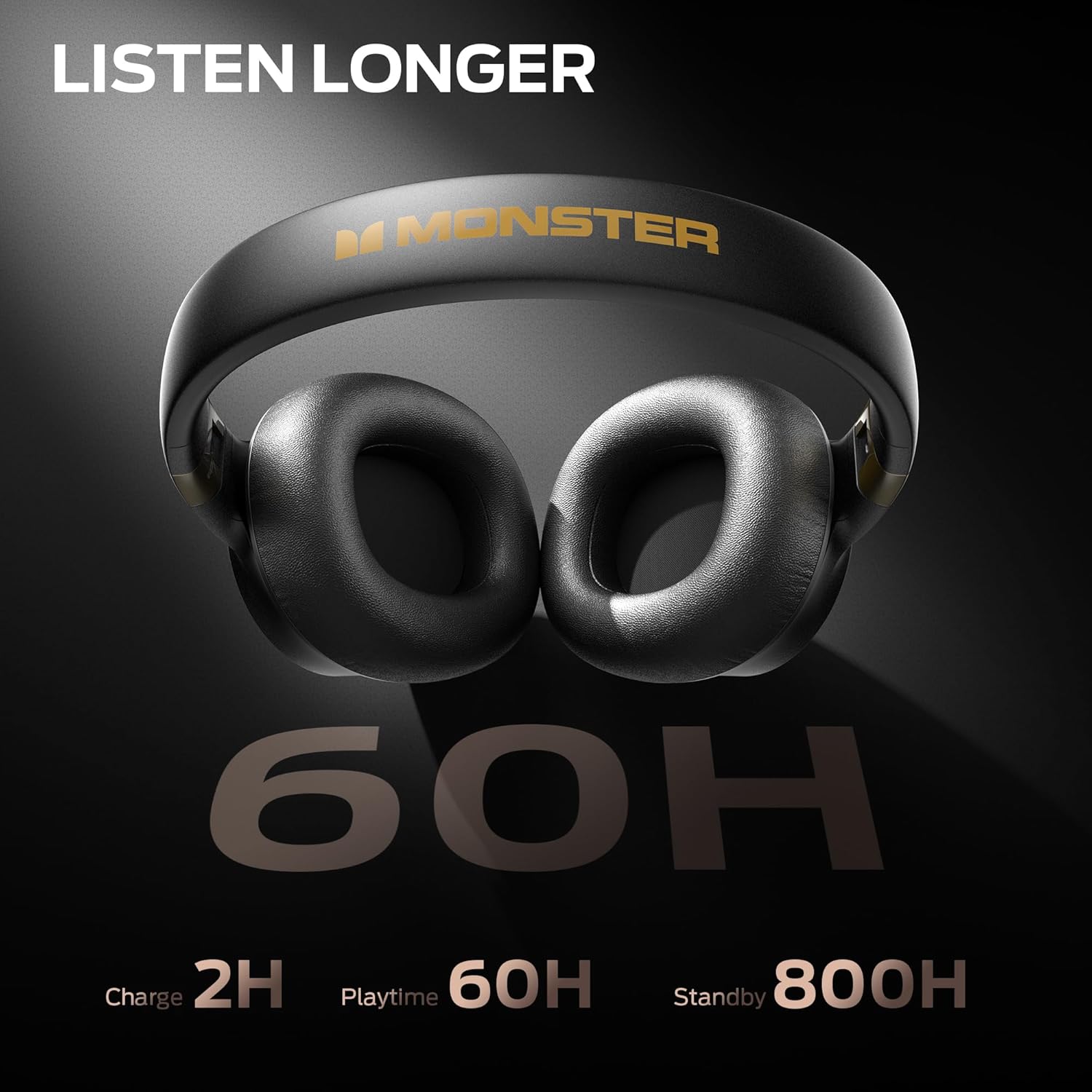 - 60H Playtime And Type-C Fast Charge - Monster Persona over ear headphones play up to 40 hours of music in noise cancelling mode. Standard mode extends the playtime to 60 hours. Designed with Type-C fast charging, enjoy 4hour listening with a 5-minute charge.