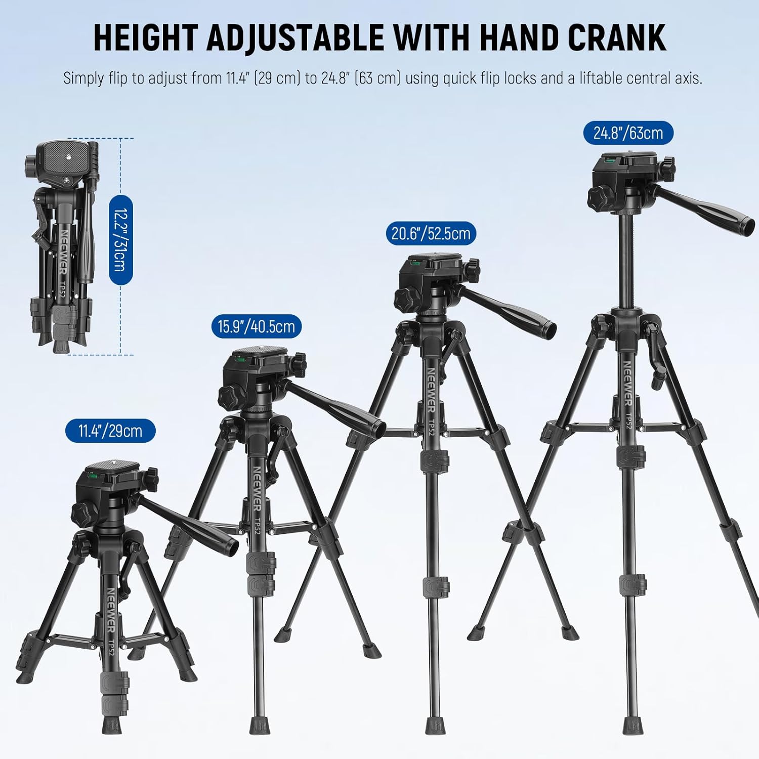 NEEWER Entry Level Version Mini Desk Phone Tripod Compatible with iPhone for Video Recording, Small Compact Table Top DSLR Camera Camcorder Webcam Stand, 3 Way Pan Tilt Head & Cell Phone Holder, TP52