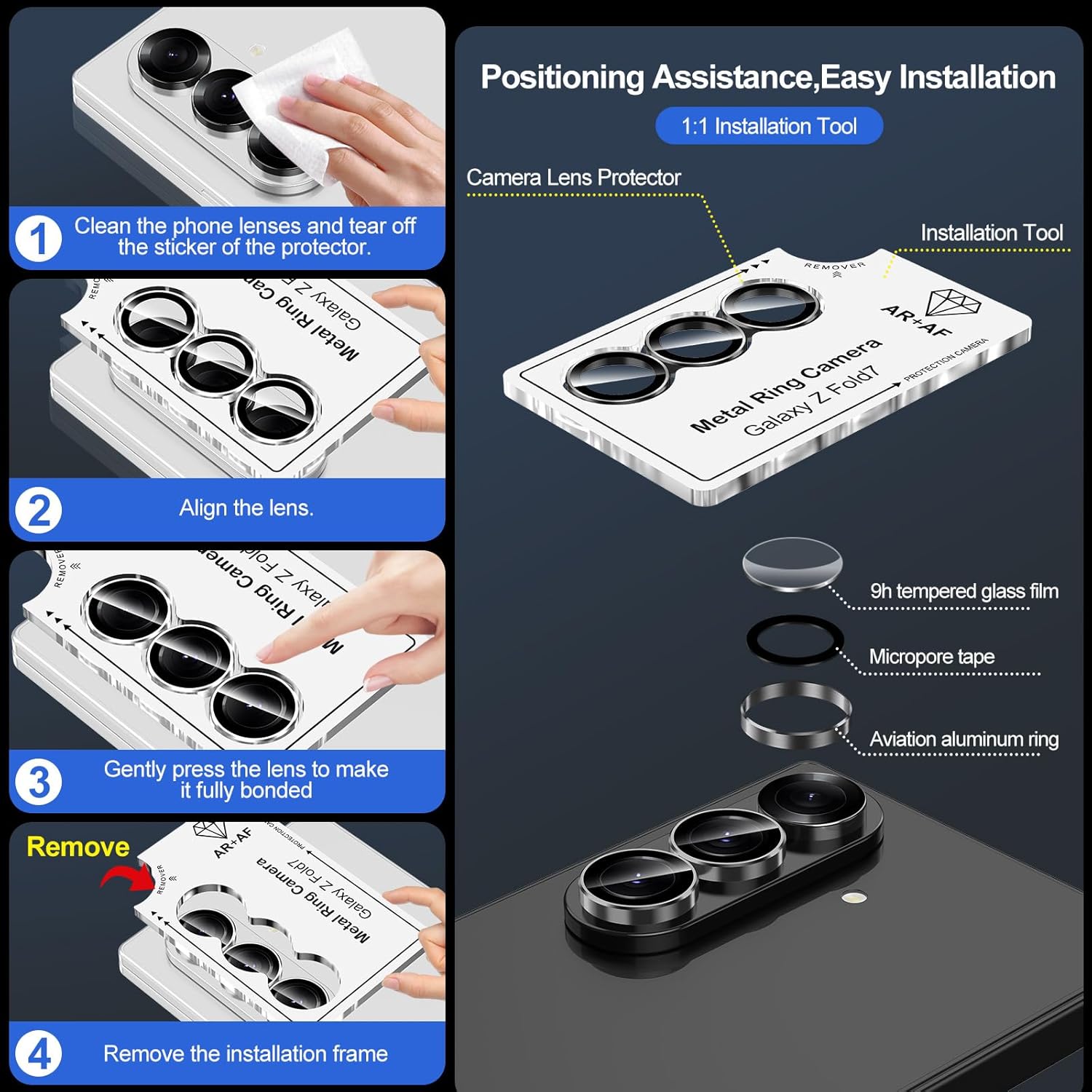 - 【Compatible Model】This ultra-thin camera lens protector only compatible with Samsung Galaxy Z Fold 7. DO NOT FIT other models. Easily fit and match with most phone cases.